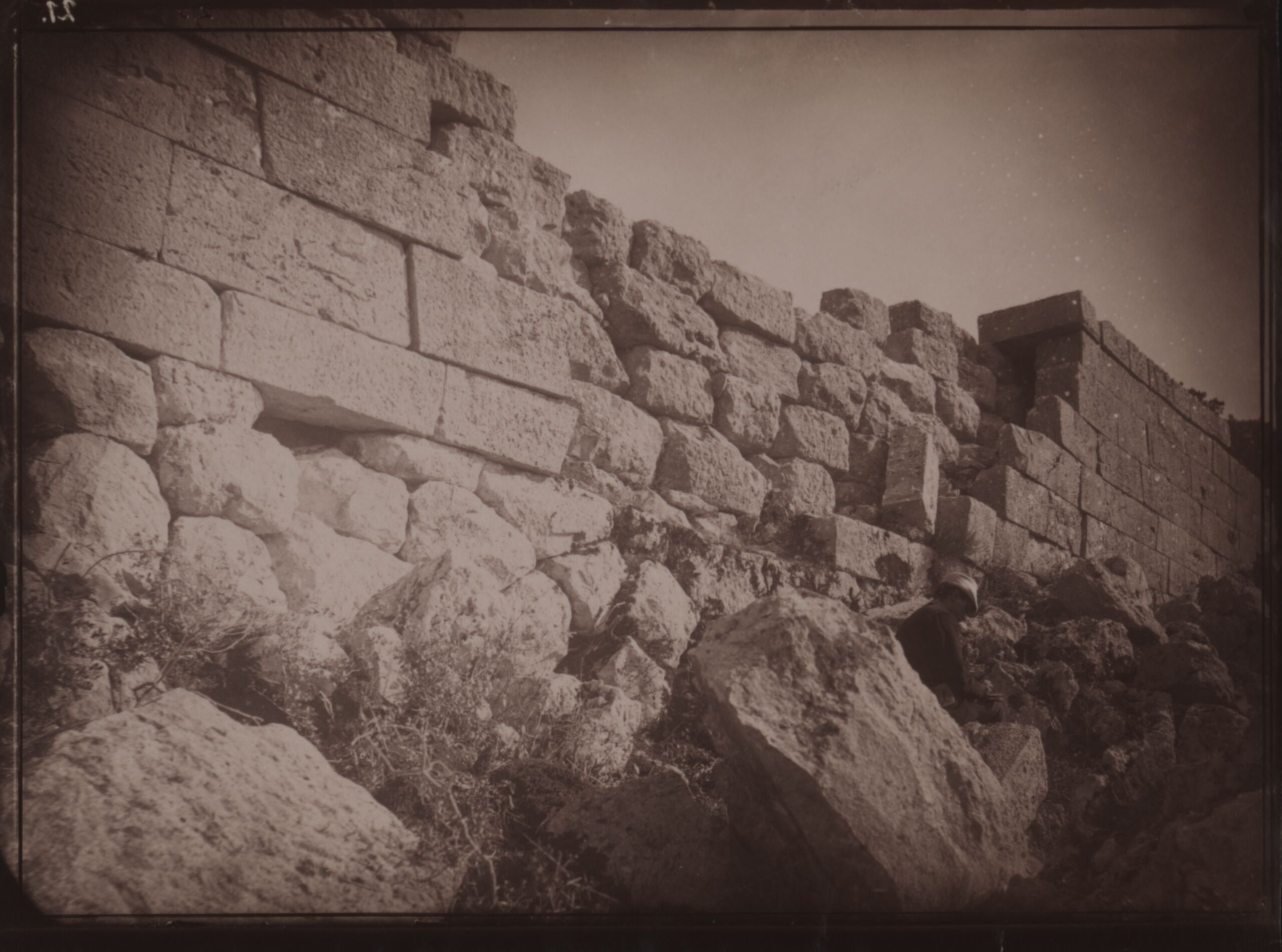 photograph, Eine verfallene Mauer mit sitzender Person im Vordergrund, in Nordafrika, Anonym, MAK Inv.nr. KI 16476-12