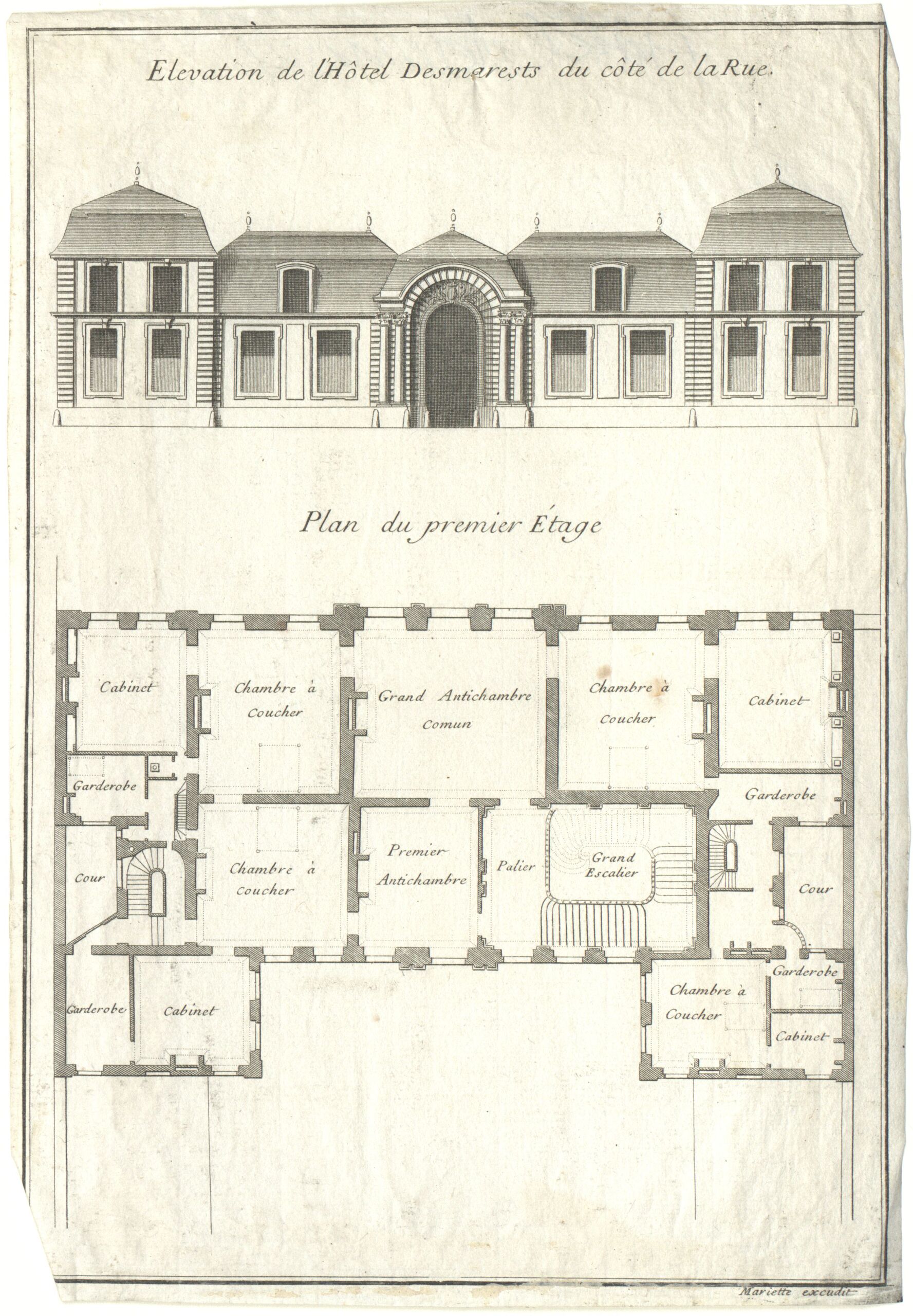 - text on object: Elevation de l’ Hotel Desmarests du cote de la Rue. / Plan du premier Etage / Mariette excudit