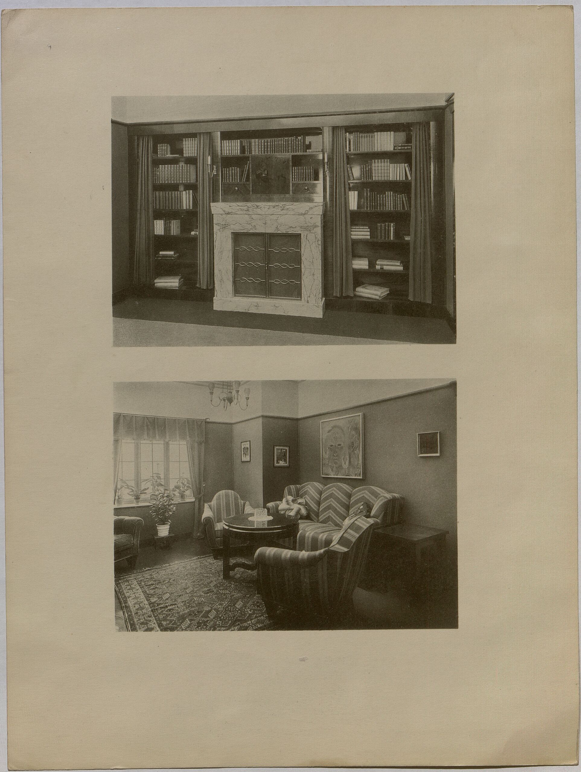 photomechanical print, Elevations of a study with seating area and library, Otto Prutscher, MAK Inv.nr. KI 14274-447-13