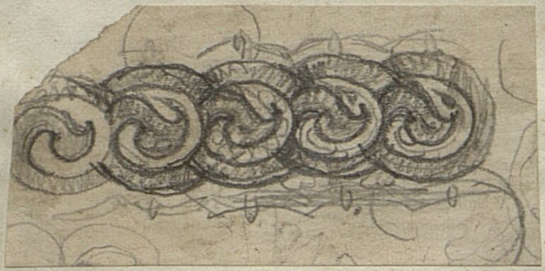 - jewelry design, Entwurf dekorativer Elemente für eine Schwertklinge mit stilisierten Blattornamenten von Wilhelm Hermann Haarstrick