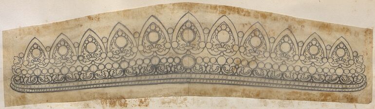 - Entwurf zu einem Diadem in Form von fünf mit Bändern gerahmenten Blumen von Wilhelm Friedrich Haarstrick (given title)