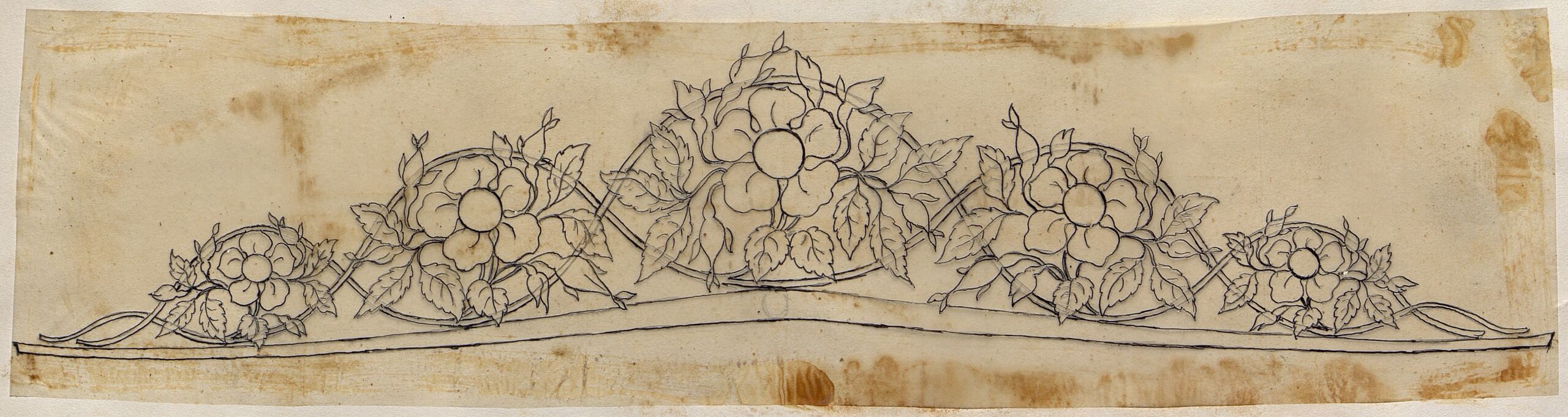 jewelry design, Entwurf zu einem Diadem in Form von fünf mit Bändern gerahmenten Blumen von Wilhelm Friedrich Haarstrick, Wilhelm Friedrich Haarstrick, MAK Inv.nr. KI 8076-4-11