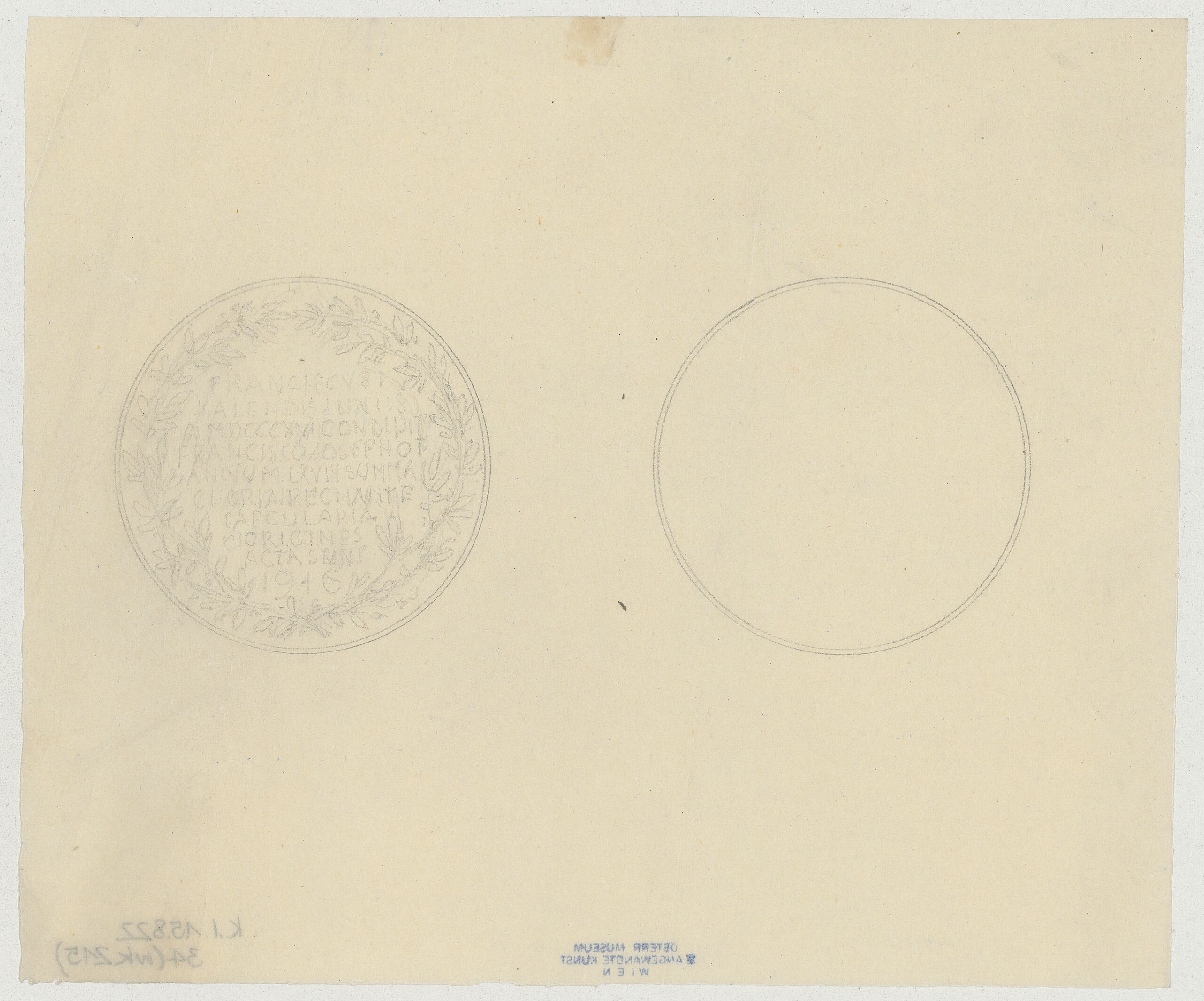 - Entwurfszeichnung für eine Medaille anlässlich des 100 jährigen Bestands der Österreichischen Nationalbank mit Blattranken einerseits und einer Umzeichnung für eine unausgeführte Variante (given title)