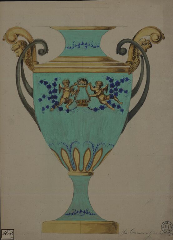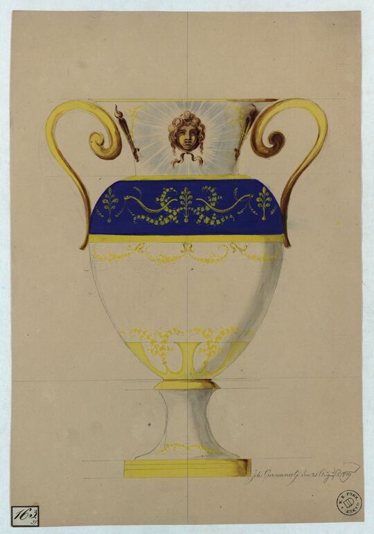 - Form- und Dekorentwurf einer Schale und einer Tasse mit Untertellern (given title)
