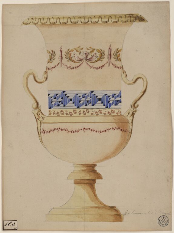 design, Form- und Dekorentwurf einer Schale und einer Tasse mit Untertellern, Johann Carmaniolj (Carmanioly), MAK Inv.nr. KI 15165-152-32
