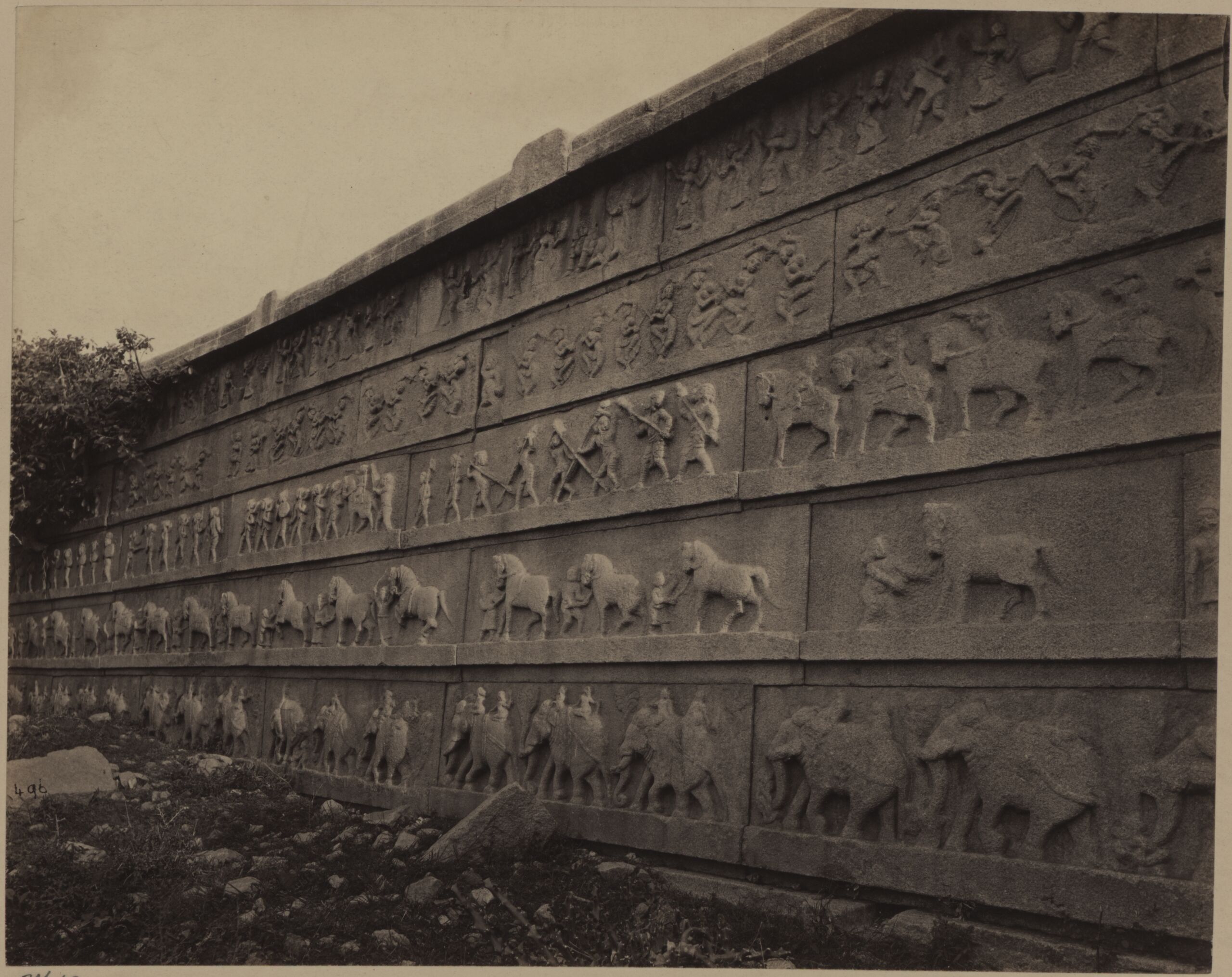 photograph, Fotografie der äußeren Seite der Mauer der Tempelanlage Volkonda (Ramachandra Tempel) bei Kamalapuram, als Teil der Ruinen von Vijayanagar, Edmund David Lyon, MAK Inv.nr. KI 3719-14