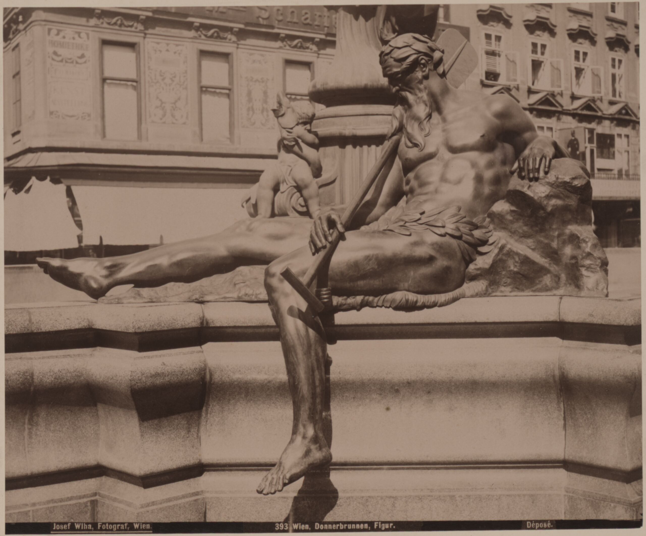 - text on object (mittig unten) : Josef Wlha, Fotograf, Wien. / 393 Wien, Donnerbrunnen, Figur. / Déposé.