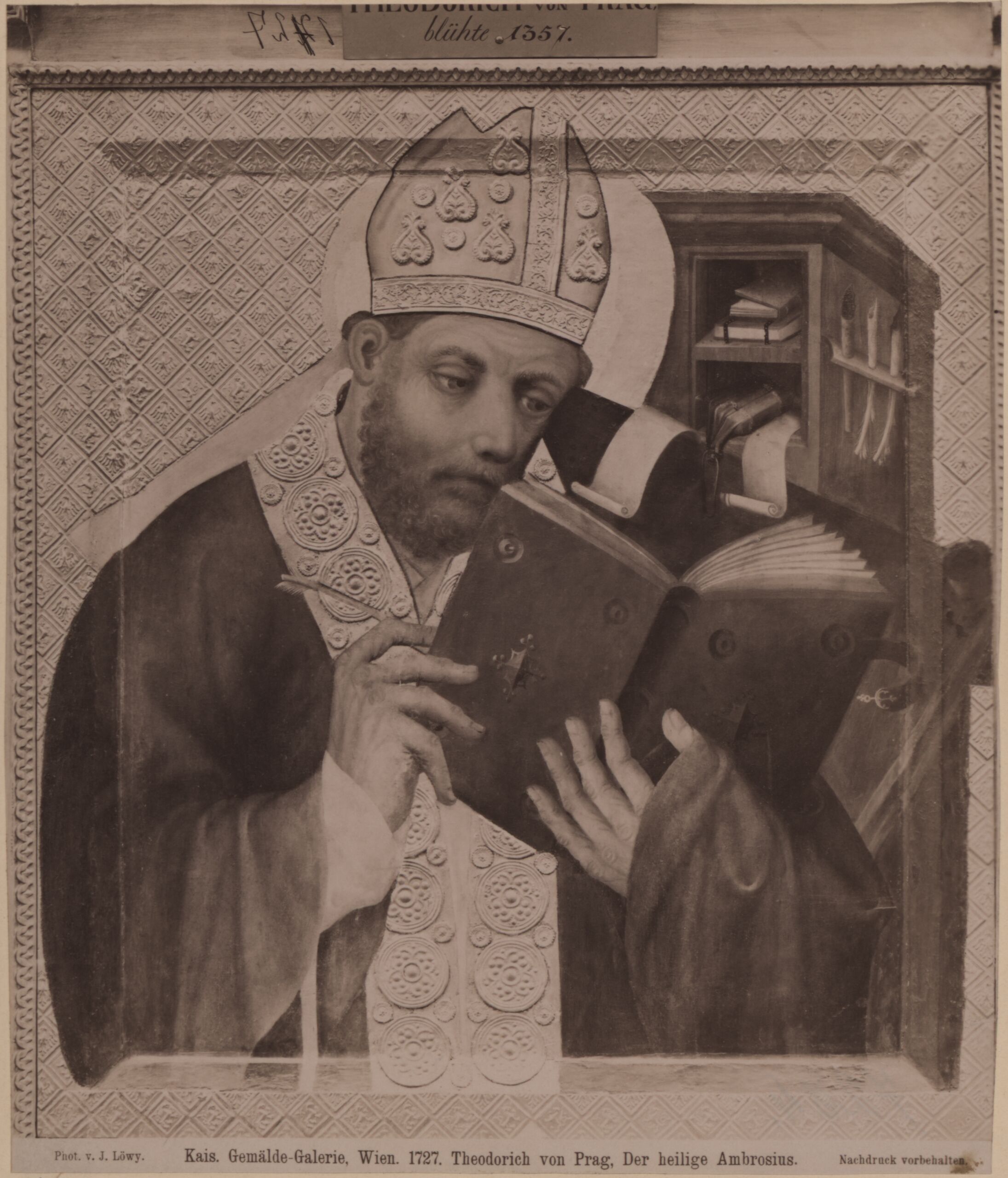 - text on object (unten) : Phot. v. J. Löwy / Kais. Gemäldegalerie Wien. 1726. Theoderich von Prag. Der heilige Ambrosius. / Nachdruck vorbehalten.
