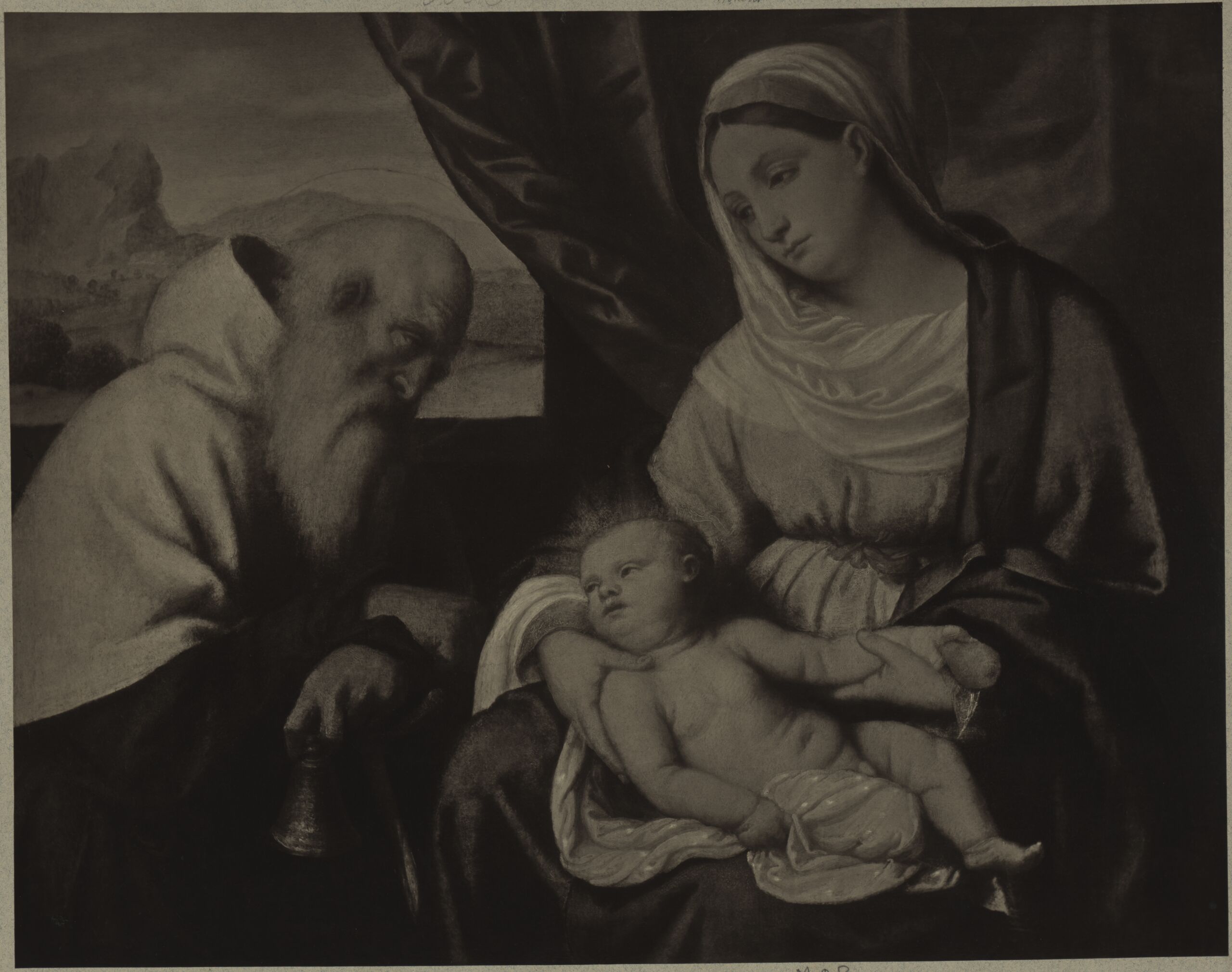 photomechanical print, Fotografie des Gemäldes "Madonna mit Kind und dem hl. Antonius" von Moretto da Brescia, Ad. Braun & Cie., MAK Inv.nr. KI 6381-3