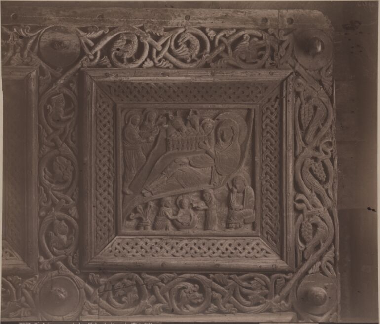 - Text am Objekt (Untersatzkarton, mittig unten) : 497. / SPALATO. / Oberer Theil des linken Flügels der Dom- / kirchenthüre.