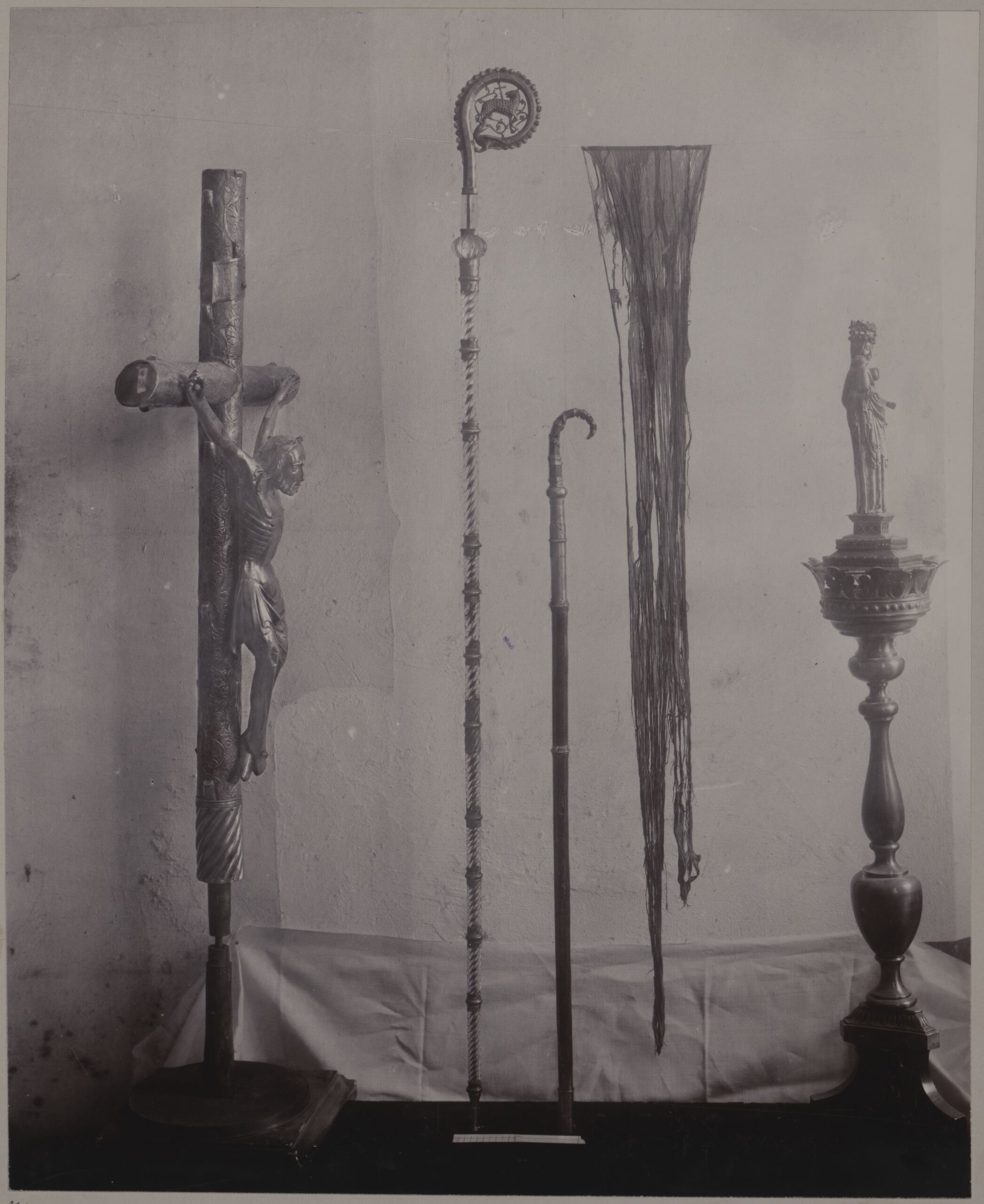 - Fotografie diverser Kunstobjekte aus dem Domschatz in Görz: Bischofstab, Petri-Stab, Kruzifix, Madonna-Statuette, Velum Petri (given title)