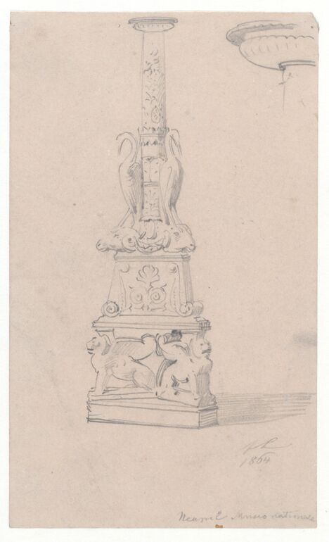 - text on object (Untersatzkarton, rechts unten) : Bronze Lampe, antik, / Museo Santangelo in Neapel.