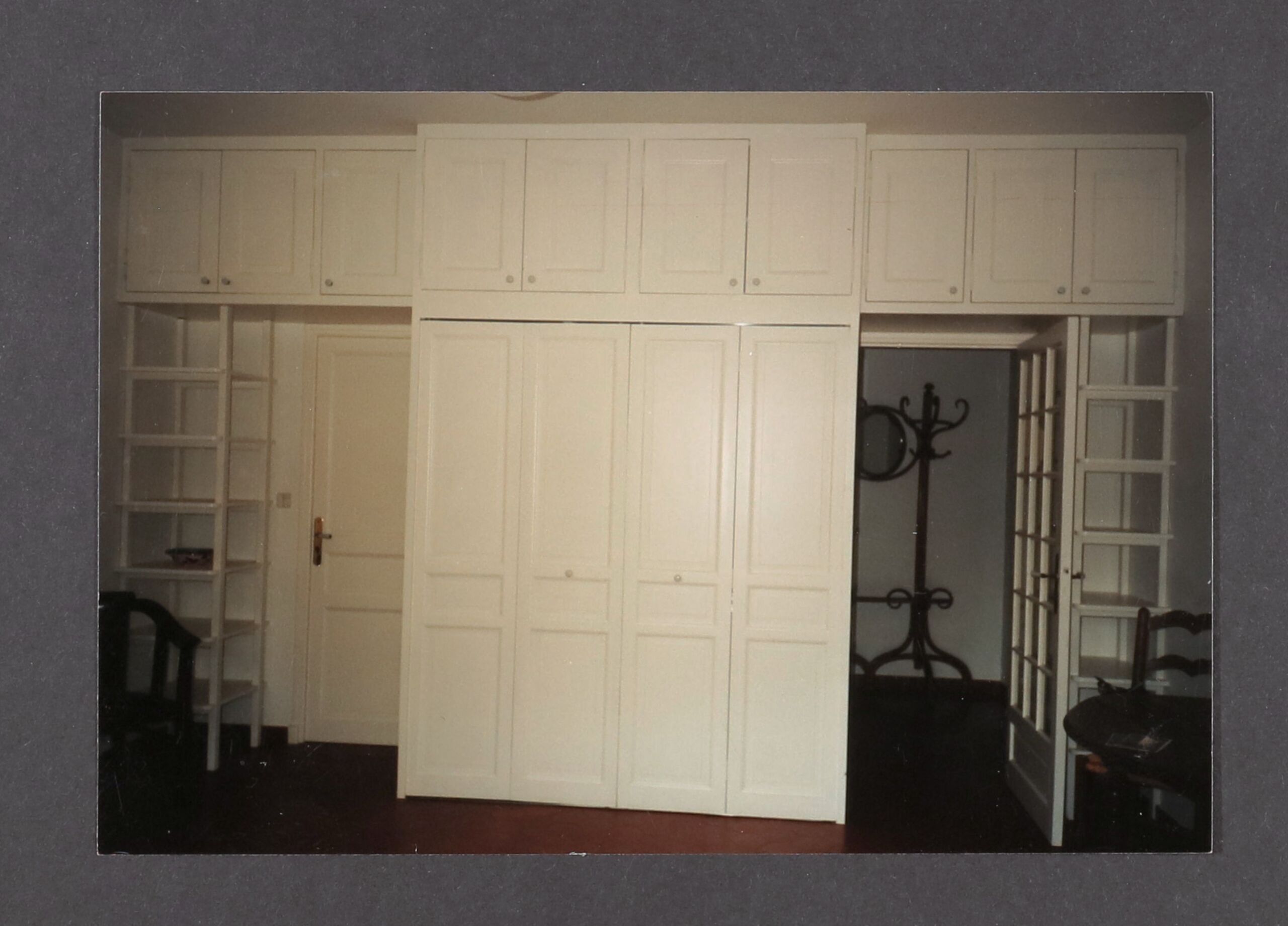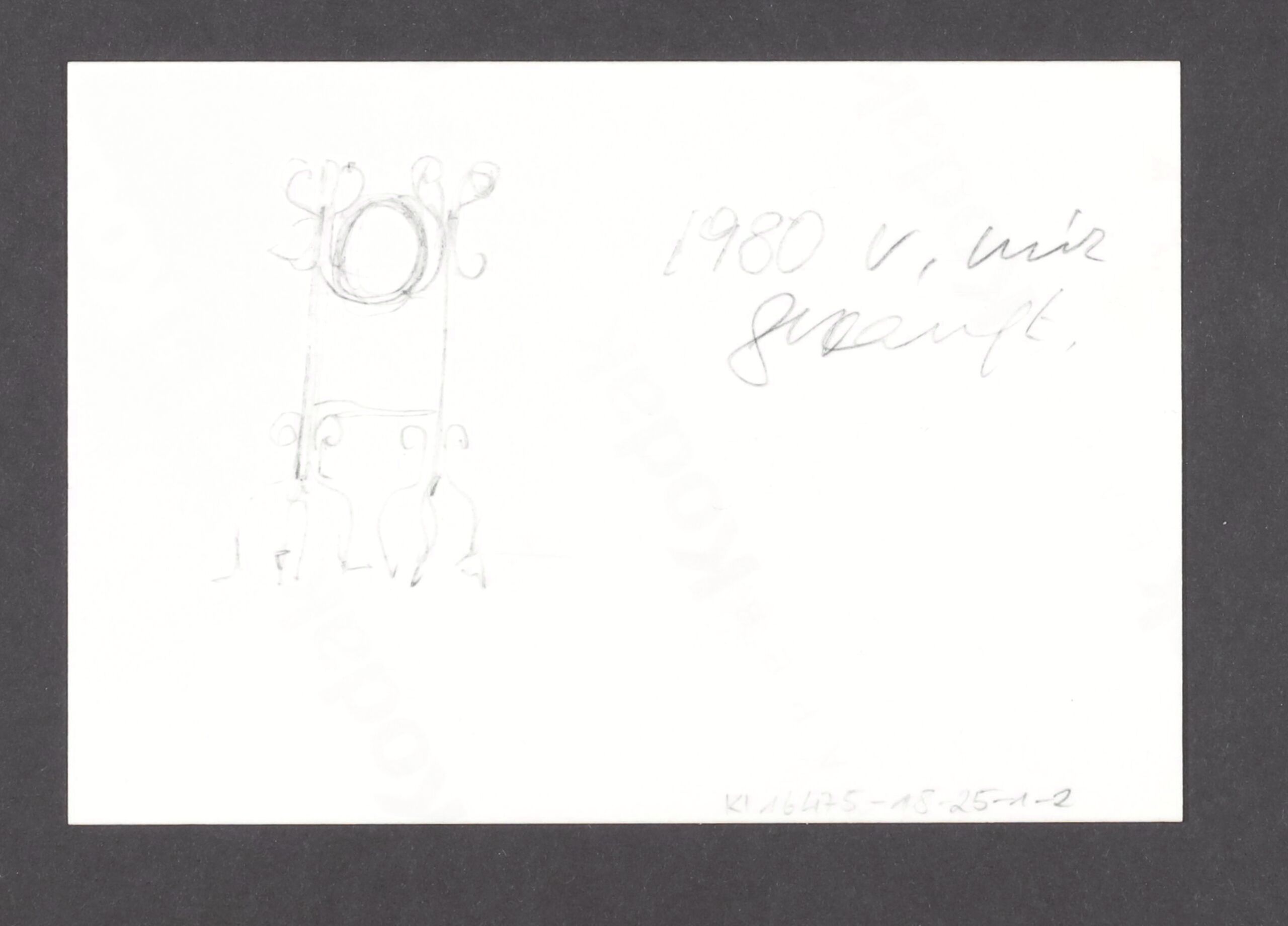 - Fotografie einer Einbauküche und Kleiderständers, Verso Skizze des Kleiderständers (given title)