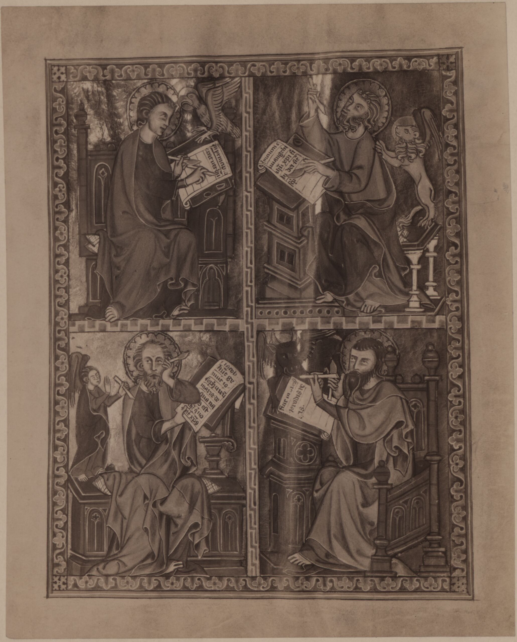 photograph, Fotografie einer Miniaturmalerei mit den vier Evangelisten, im Plenar des Herzogs Otto des Milden, Wilhelm Gmeiner, MAK Inv.nr. KI 7639-38