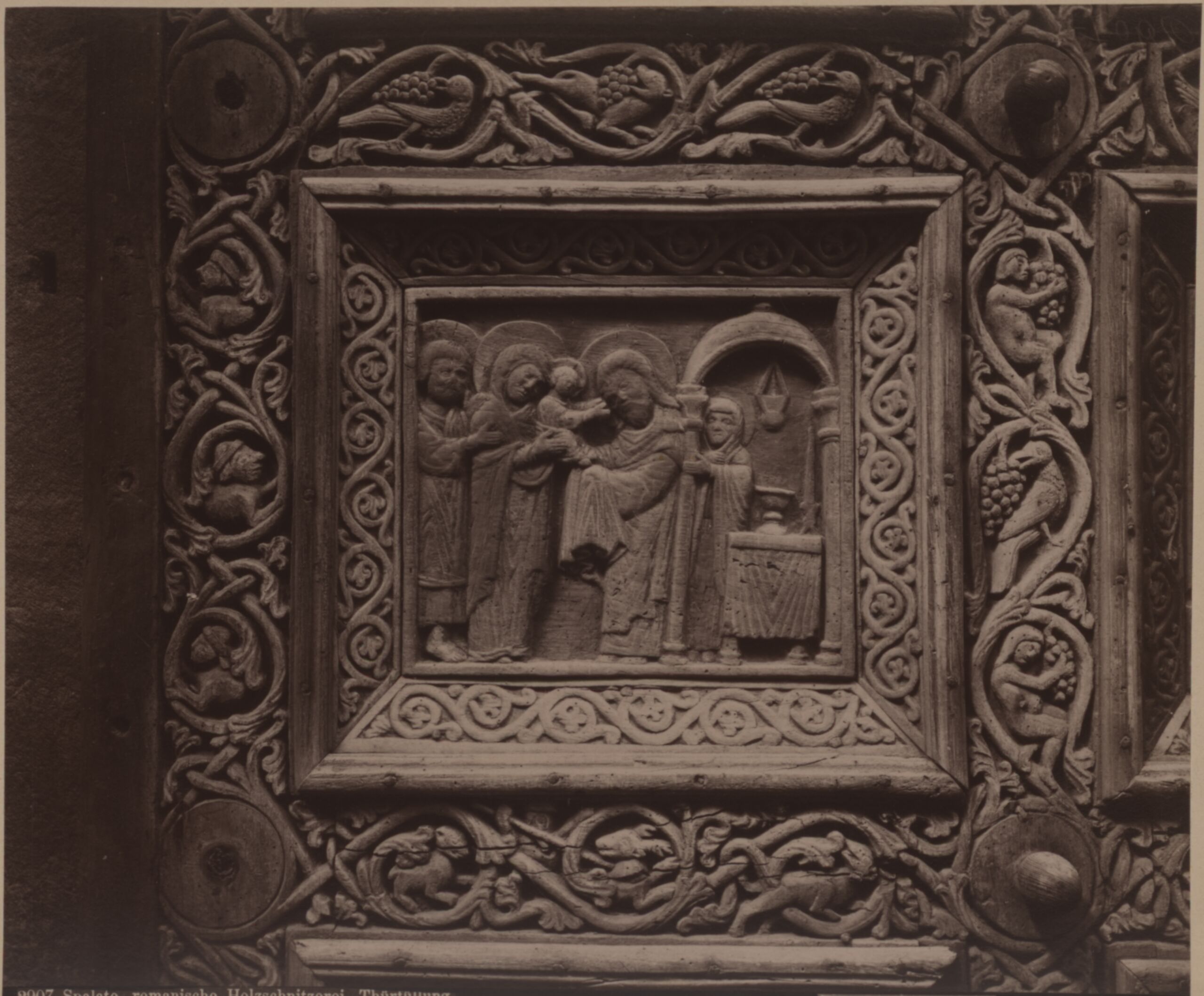 - Fotografie einer romanischen Schnitzerei aus Holz als Türfüllung in Split (Spalato) (given title)