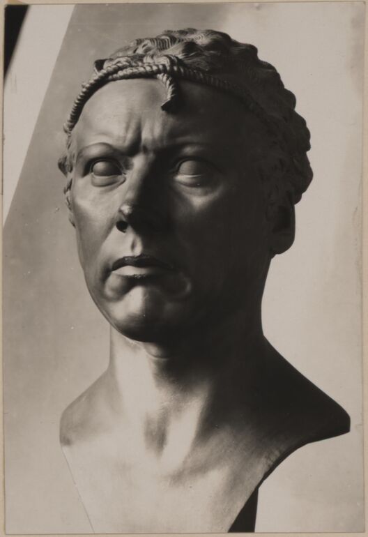 - Fotografie einer Stein-Skulptur eines "Charakterkopfes" mit kurzem gewellten Haar, von Franz Xaver Messerschmidt (given title)