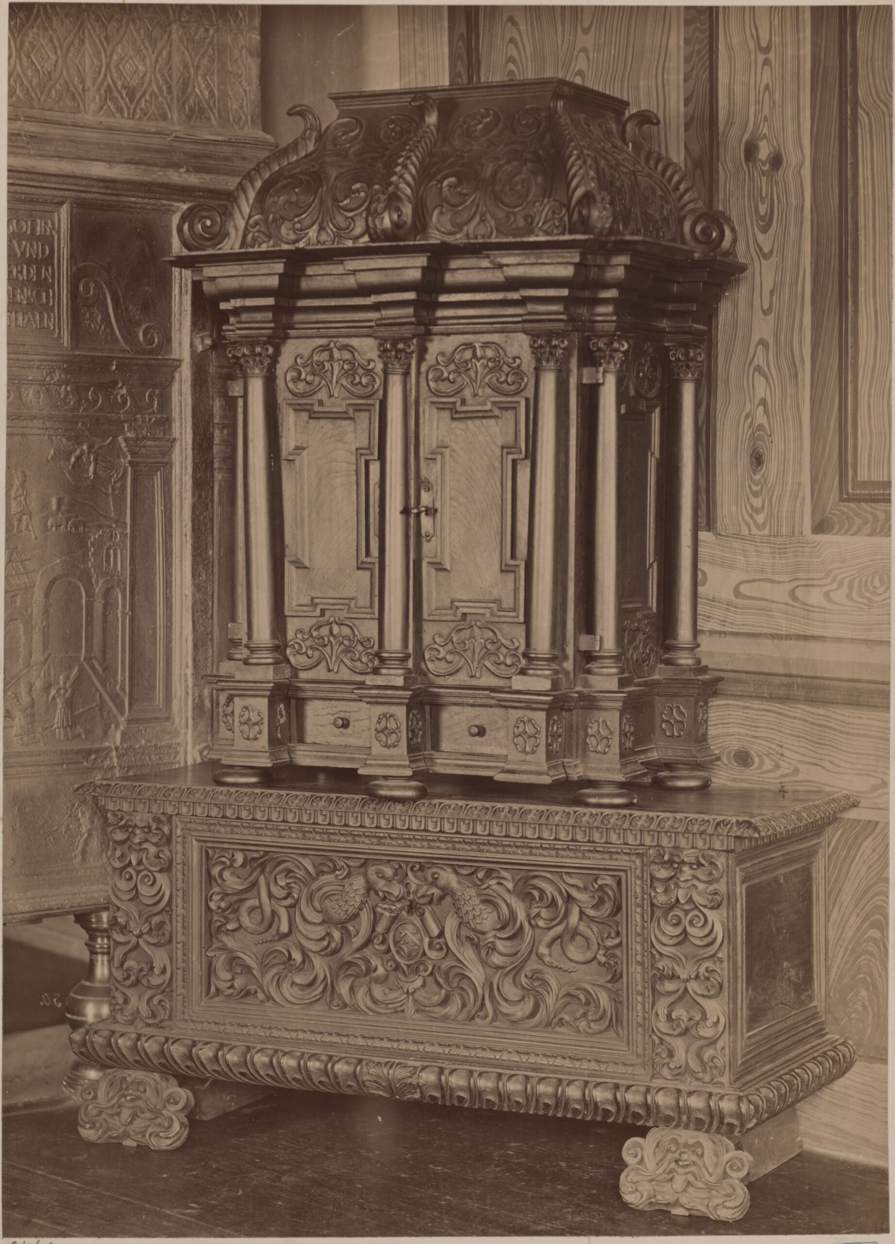 photograph, Fotografie einer Truhe und eines Aufsatzschrankes aus Schloss Ambras, Friedrich Bopp, MAK Inv.nr. KI 3468-12