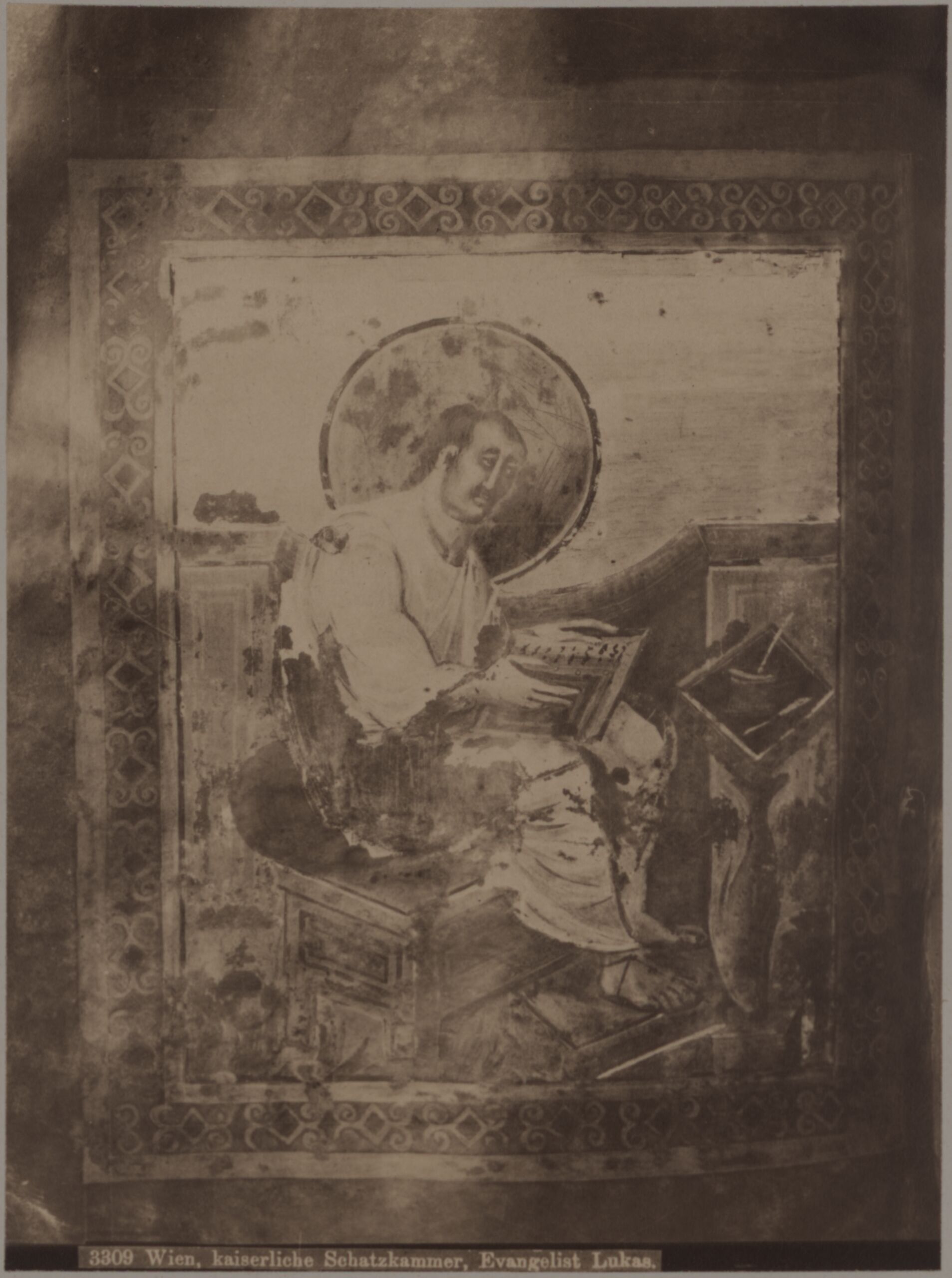- text on object (unten) : 3309 Wien, kaiserliche Schatzkammer, Evangelist Lukas