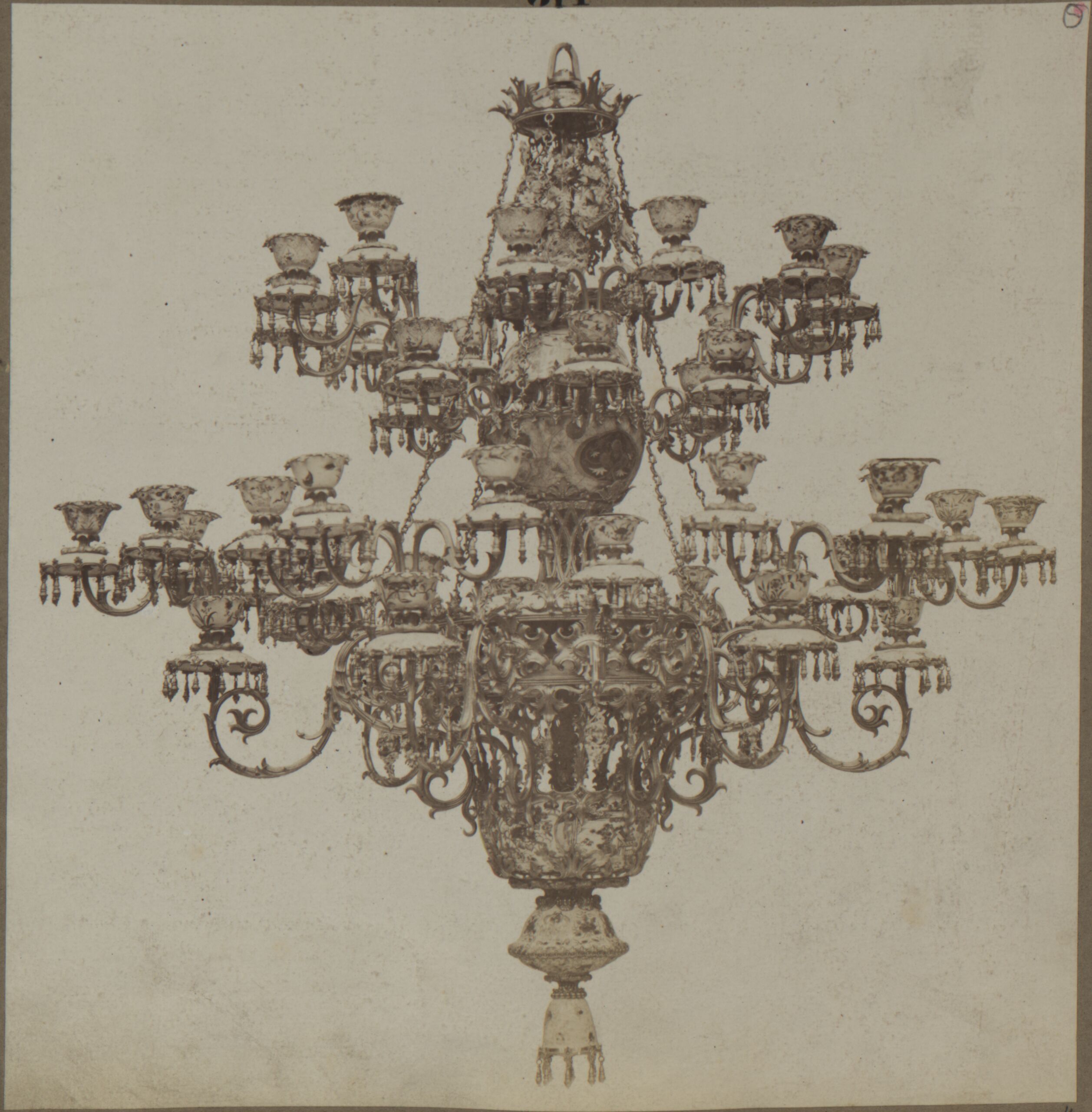 - Fotografie eines bronzenen Lusters der Erzgießerei und Bronzewarenfabrik D. Hollenbach (given title)