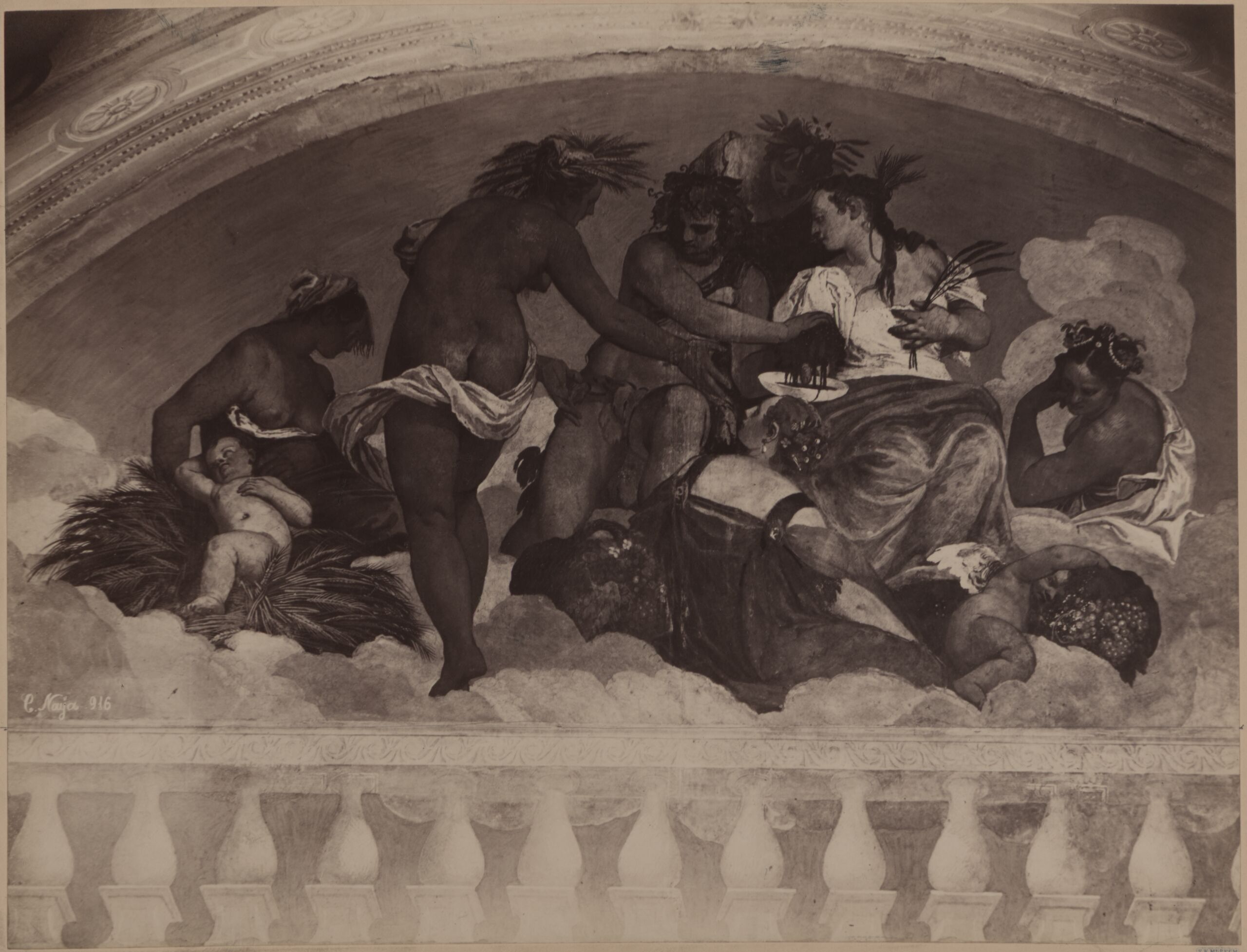 photograph, Fotografie eines Freskos in der Villa Barbaro in Maser von Paolo Veronese, Carlo Naya, MAK Inv.nr. KI 4067-16