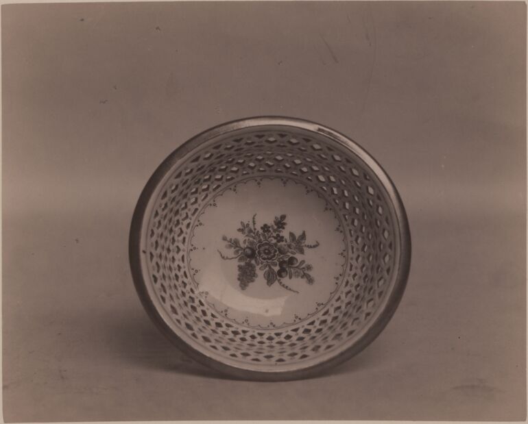 - text on object: [Untersatzkarton, links unten]: Wien, Altwiener Porzellan-Ausstellung im K. k. Österr. Museum 1904.[Untersatzkarton, mittig unten]: 10.[Untersatzkarton, rechts unten]: Wandleuchter mit bunten chines. / Landschaften. Um 1725. Österr. Museum.
