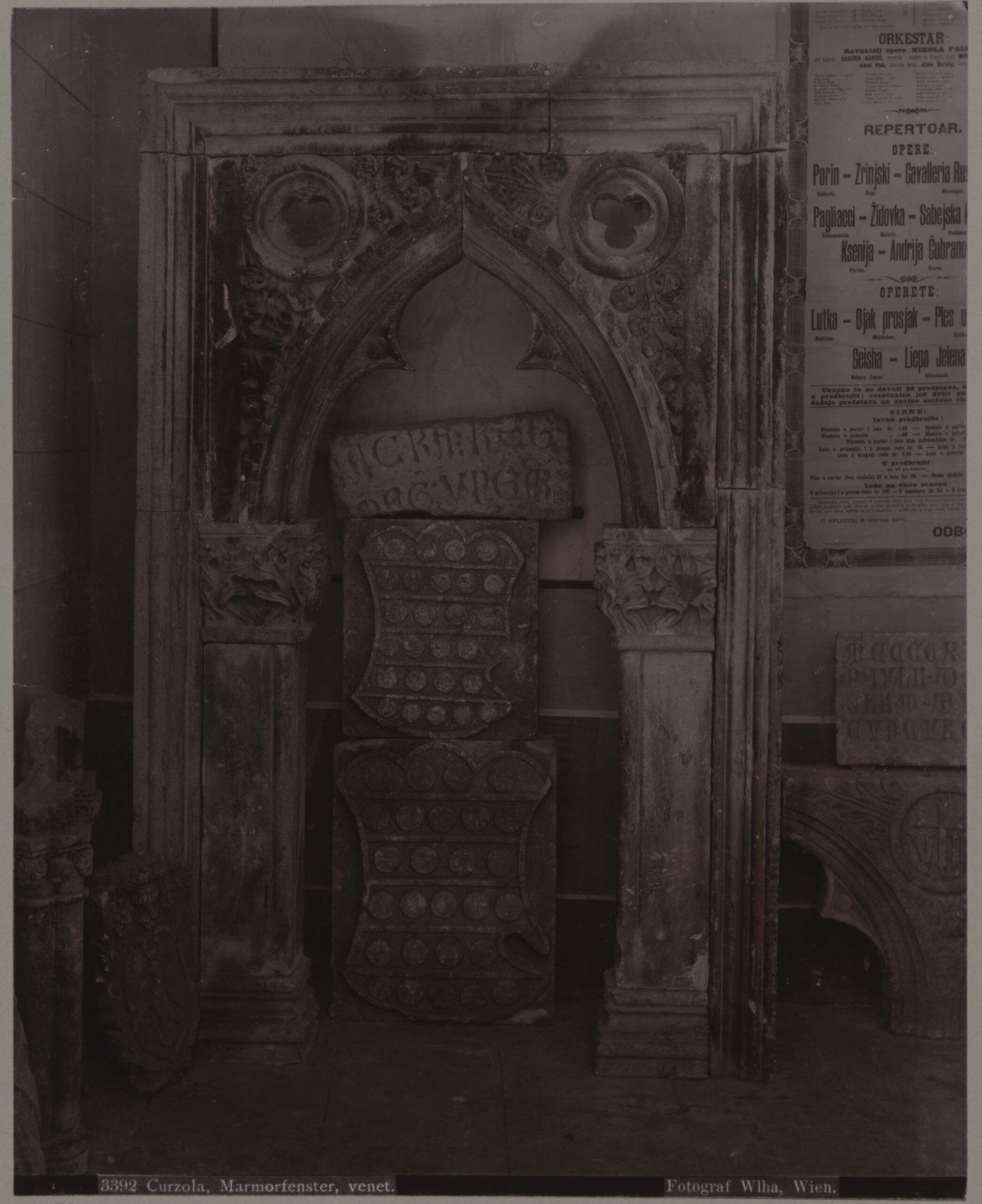 - text on object (mittig unten) : 3392 Curzola, Marmorfenster, venet. / Fotograf Wlha, Wien.