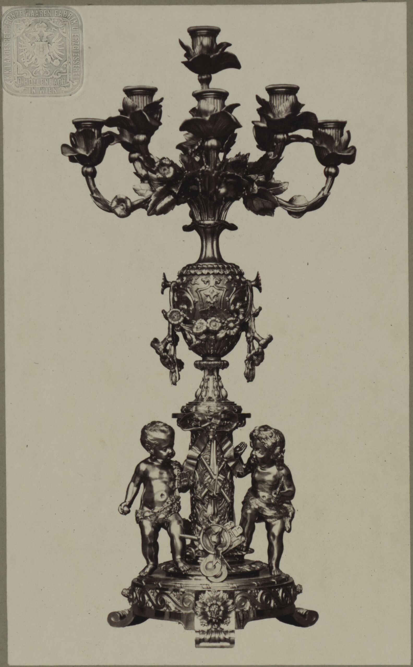 - Fotografie eines vergoldeten Kandelabers, ausgeführt von der Bronzewarenfabrik & Erzgiesserei D. Hollenbach's Neffen Ed. & F. Richter in Wien (given title)