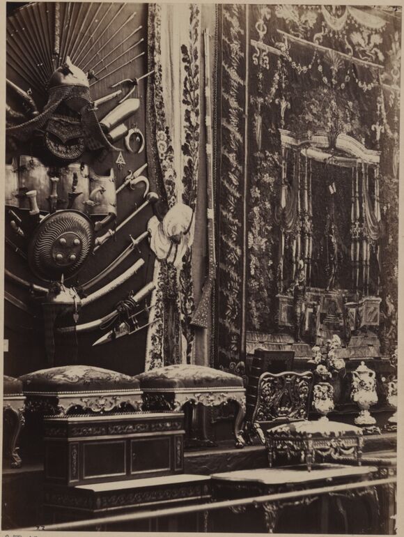 - text on object: [Untersatzkarton]: L'ART ANCIEN / UNION CENTRALE DES BEAUX ARTS APPLIQUES A L'INDUSTRIE / EXPOSITION DE 1865. / FRANCK PHOT. / 18. Rue Vivienne PARIS. [gedruckt][Untersatzkarton, links unten]: MUSÉE RÉTROSPECTIF / Retable / Bois sculpté, peint et doré - XVe siecle. / Appartenant à M. GERMEAU. [gedruckt, aufgeklebt][Untersatzkarton, rechts unten]: Altar. Holz geschnitzt u. vergoldet. Französisch, 15. Jhdt. [handschriftlich]
