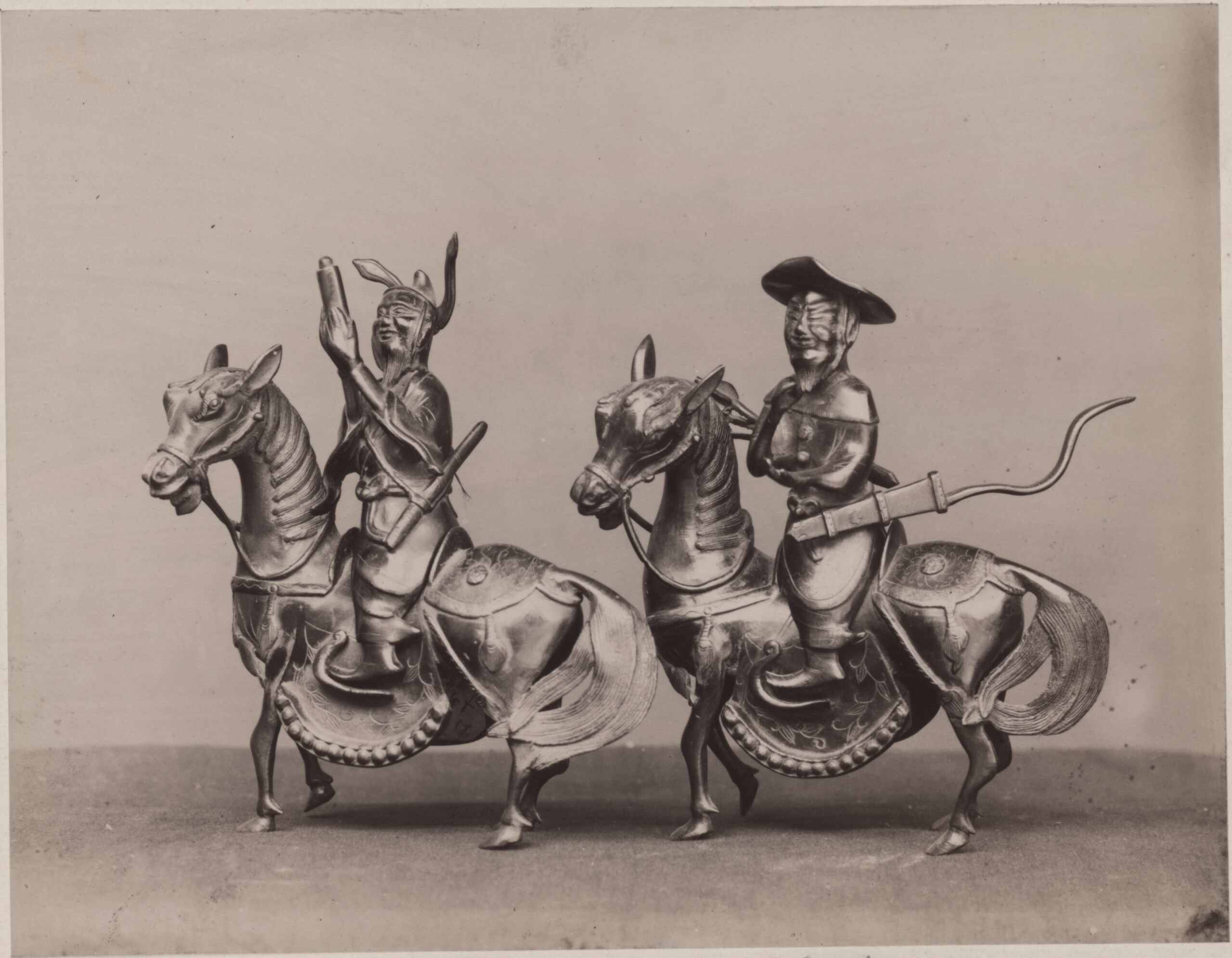 photograph, Fotografie von zwei japanischen Reiter-Statuetten, Victor Angerer, MAK Inv.nr. KI 4207-6