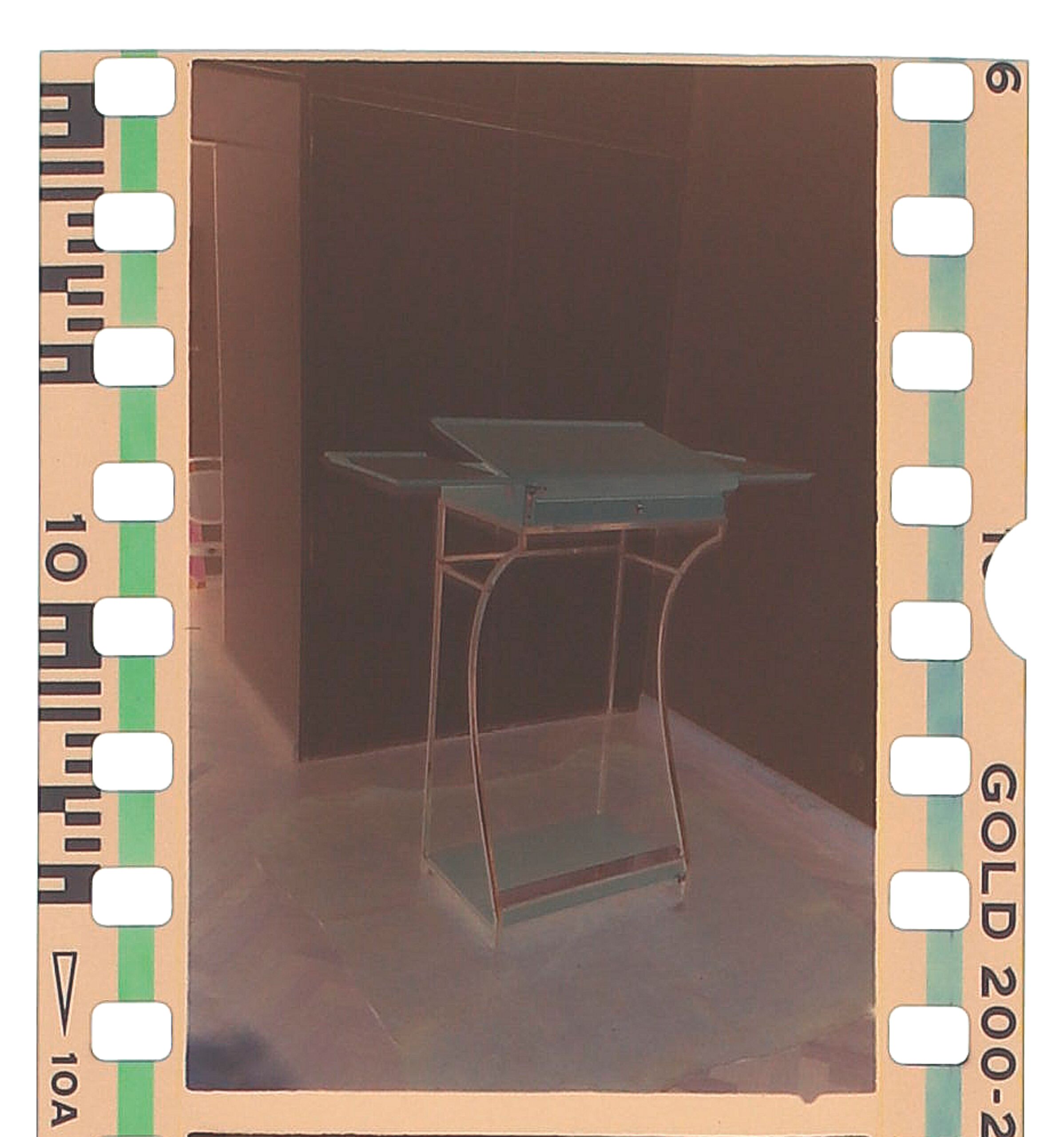 - negative (photographic), Fotonegativ des Arbeitspults von Karl Ludwig Vavrovsky in der Seitenansicht
