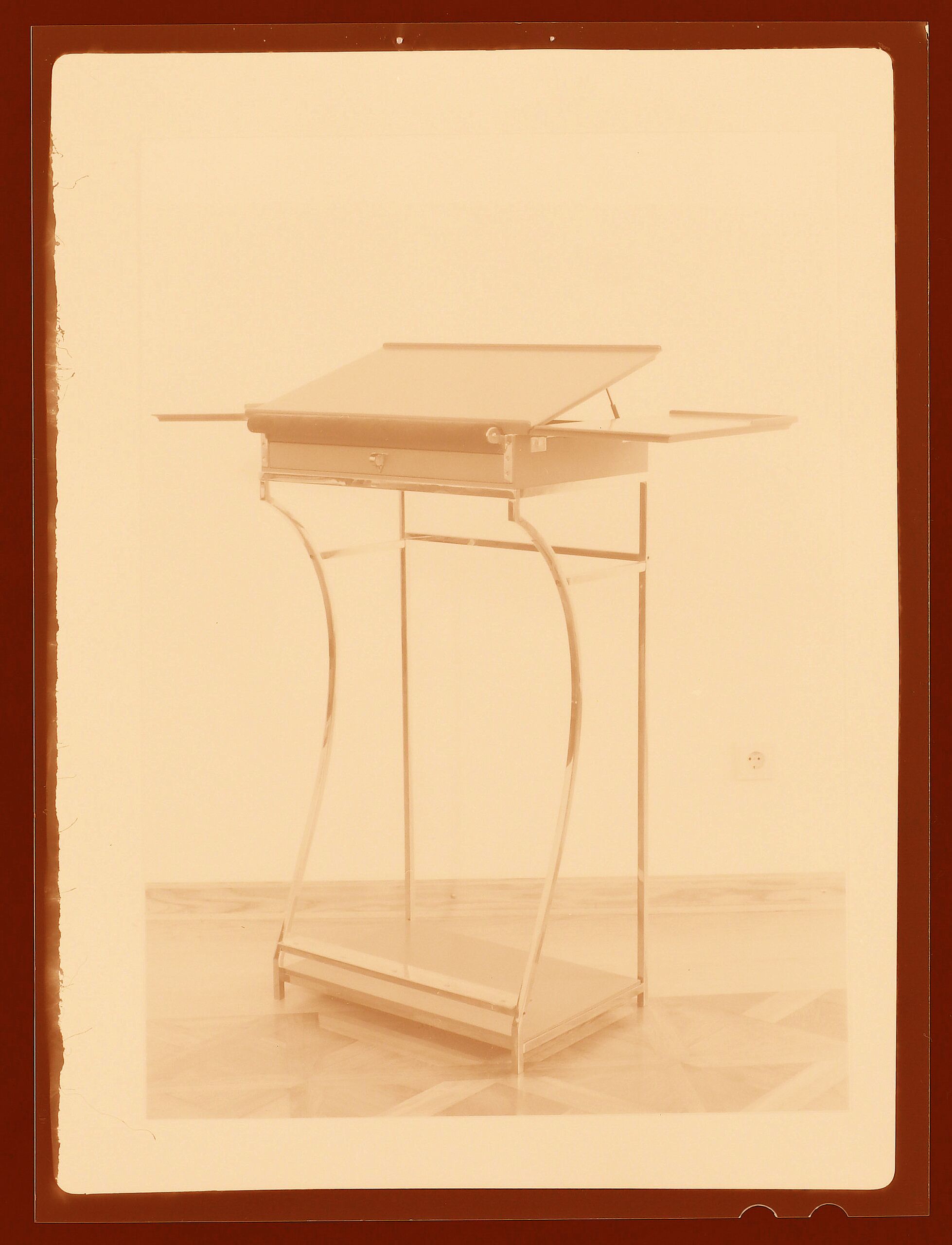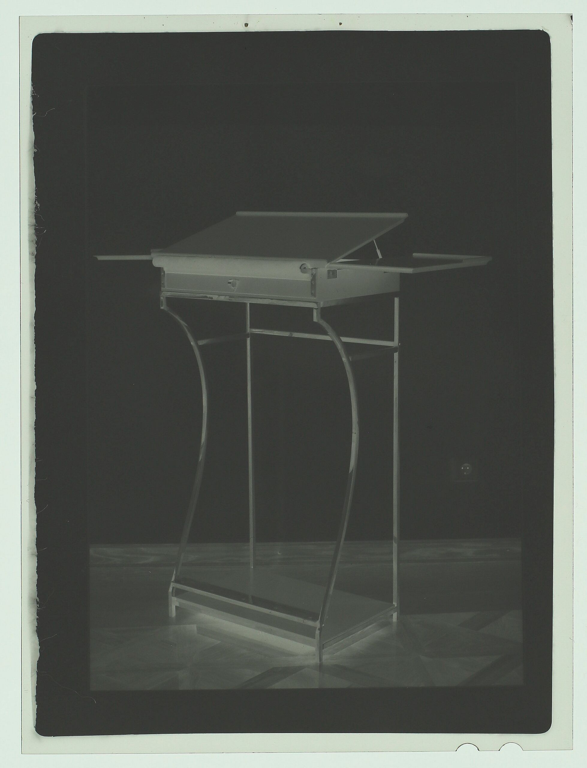 - negative (photographic), Fotonegativ des Arbeitspults von Karl Ludwig Vavrovsky in der Seitenansicht