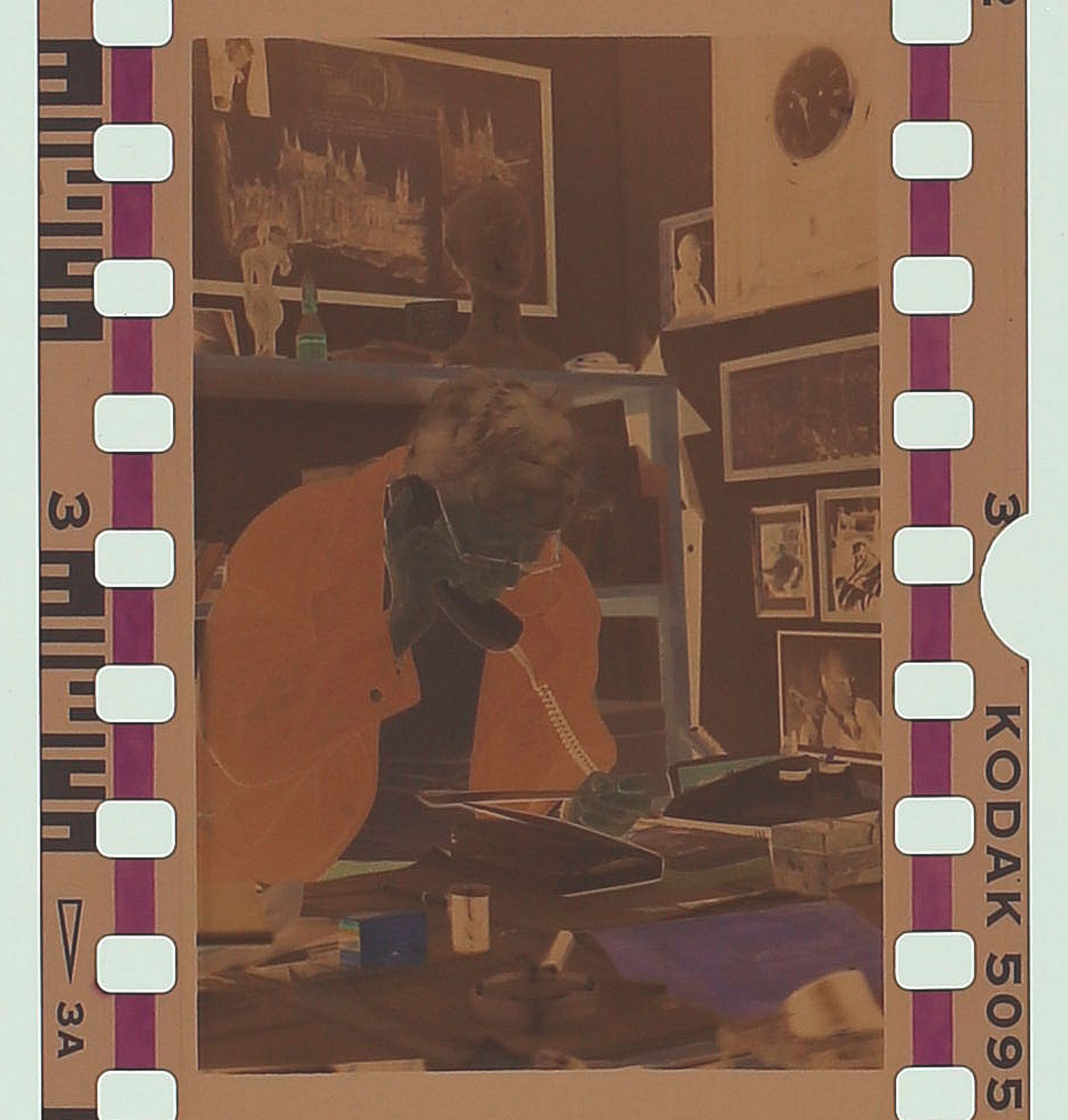 - negative (photographic), Fotonegative des Schmuckkästchens von Clarisse Praun und einer Person auf einem Sofa