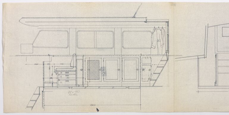 working drawing, Frontal- und Seitenansicht eines Damenwäscheschranks, Josef Frank, MAK Inv.nr. KI 16475-2-23