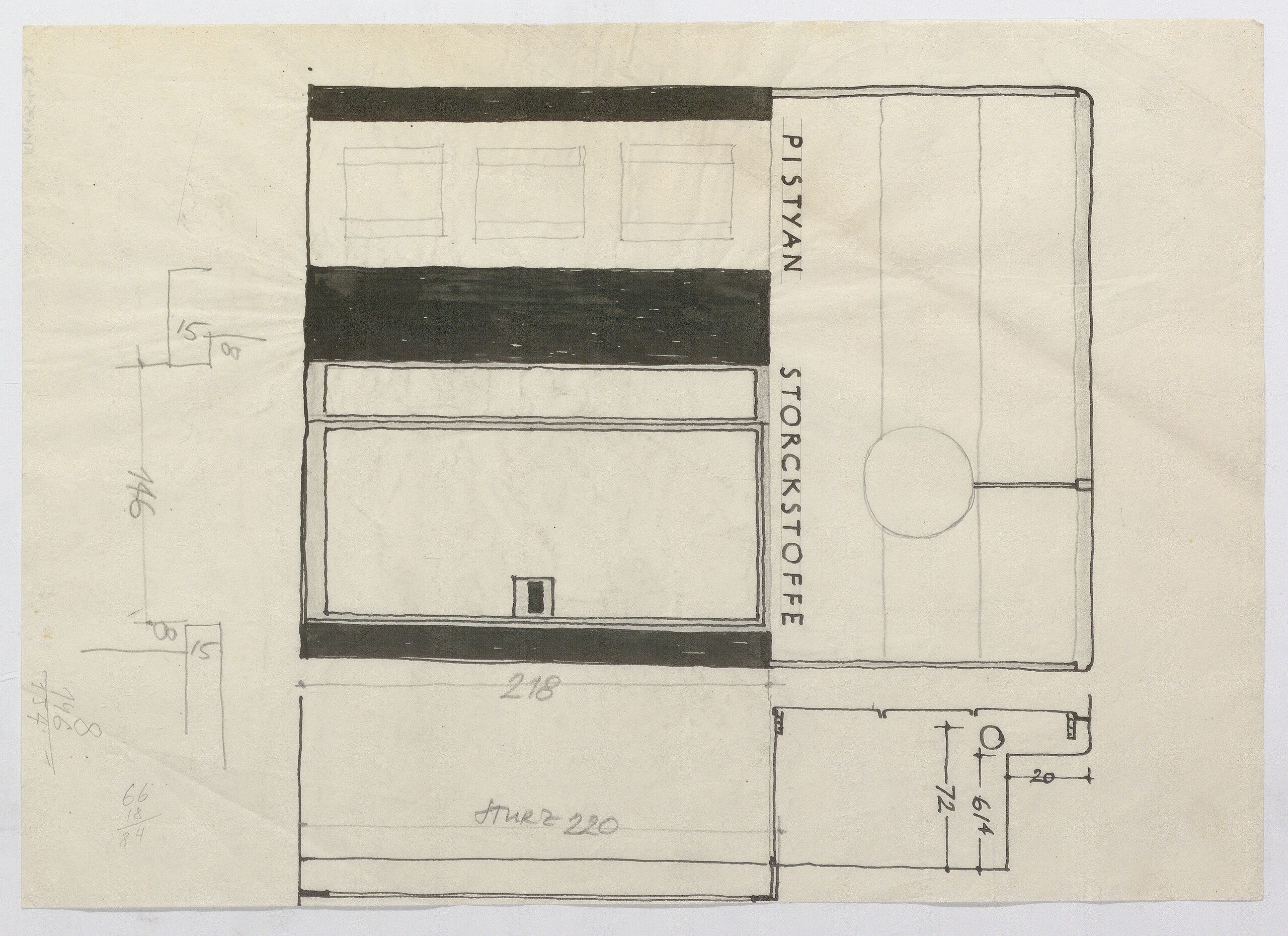 design drawing, Frontalansicht Eingangsbereich, Seitenansicht der Türe, Anna-Lülja Praun, MAK Inv.nr. KI 16475-4-363