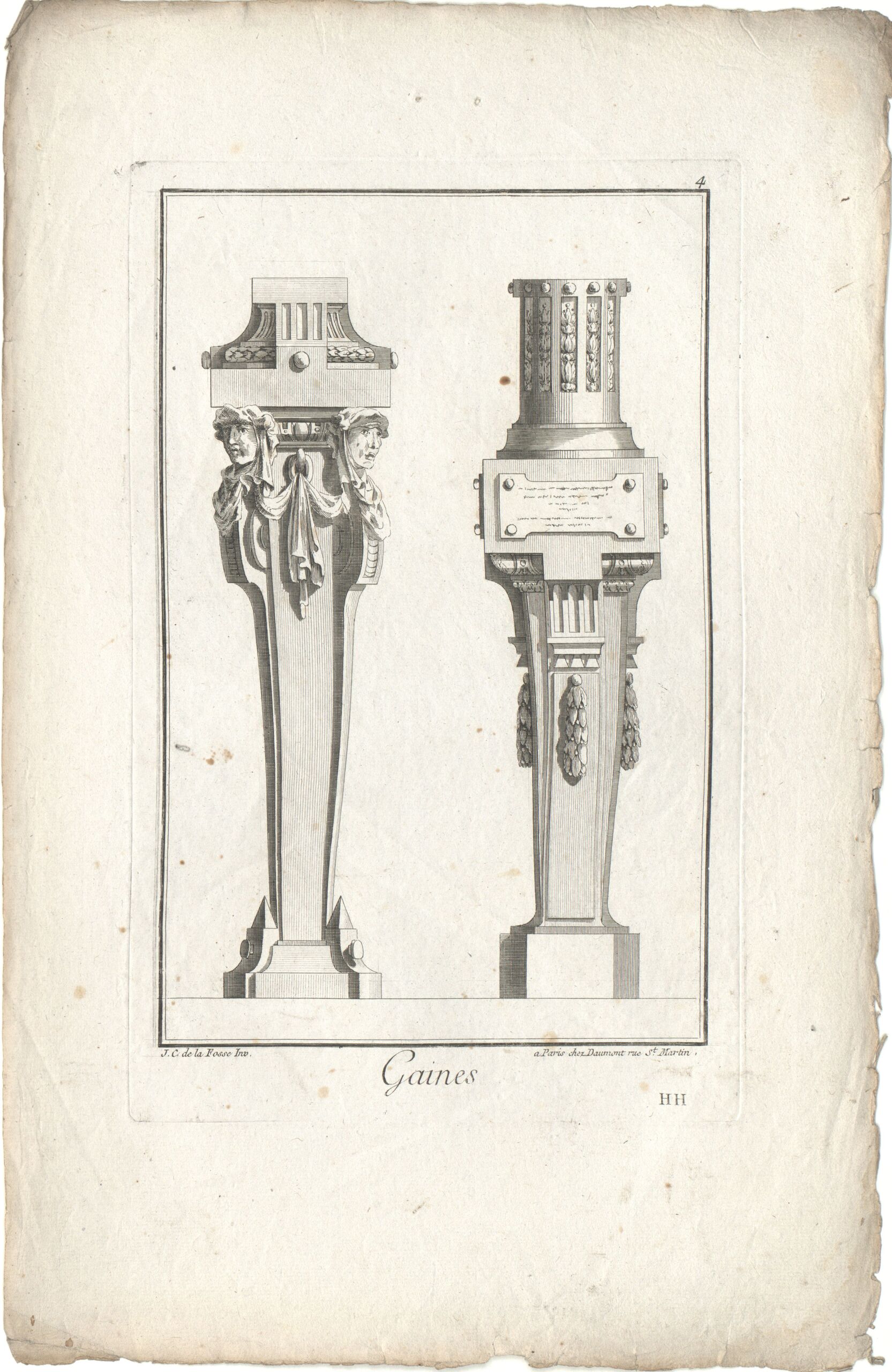 ornamental engraving, „Gaines“, Blatt 4 aus der Folge HH (Gueridons) aus dem zweiten Teil des Reihenwerks, herausgegeben von Daumont, Jean-Charles Delafosse, MAK Inv.nr. KI 15262-38