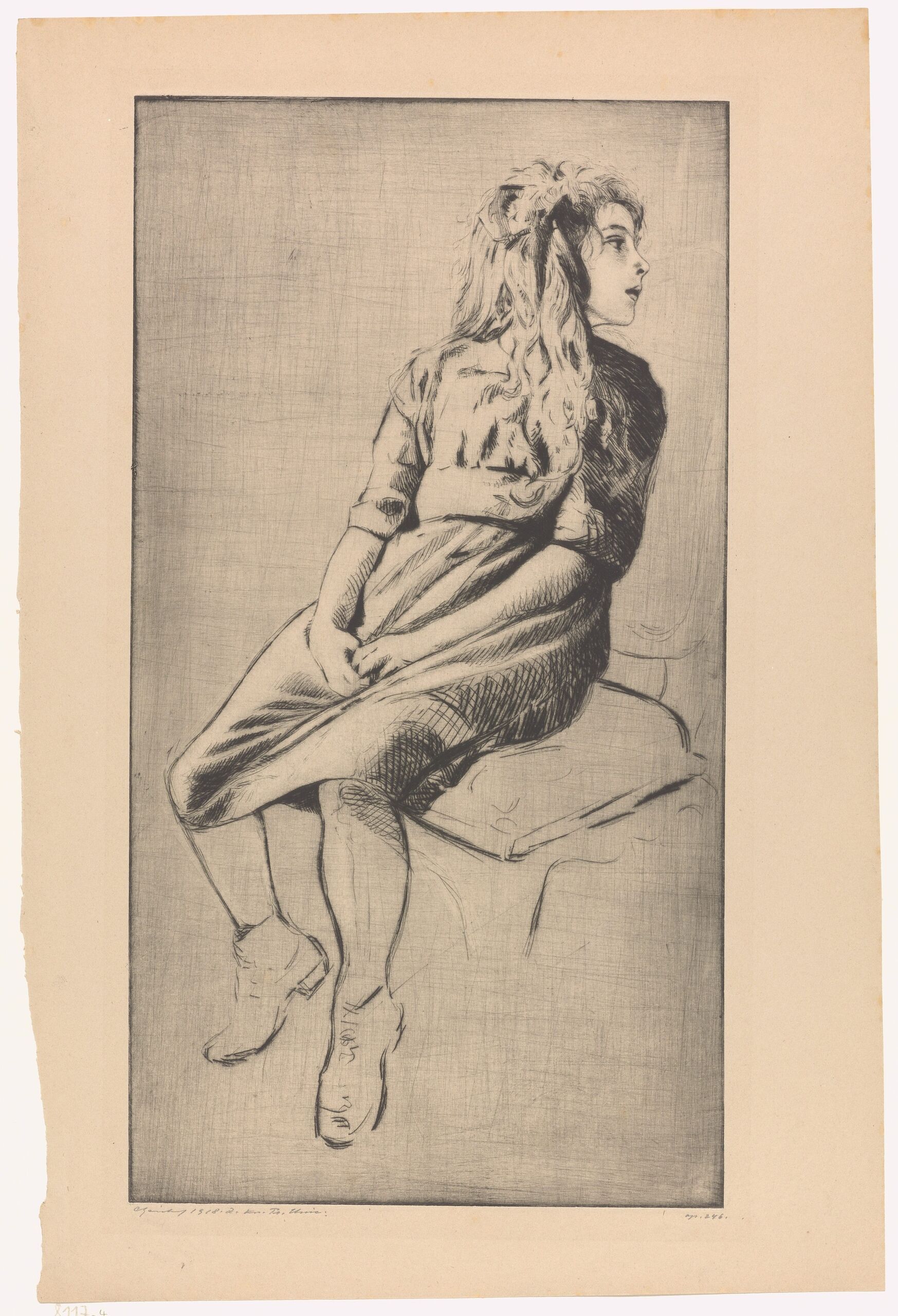 Druckgrafik, Ganzfigurenporträt eines Mädchens, Karl Anton Reichel, MAK Inv.nr. KI 8117-8