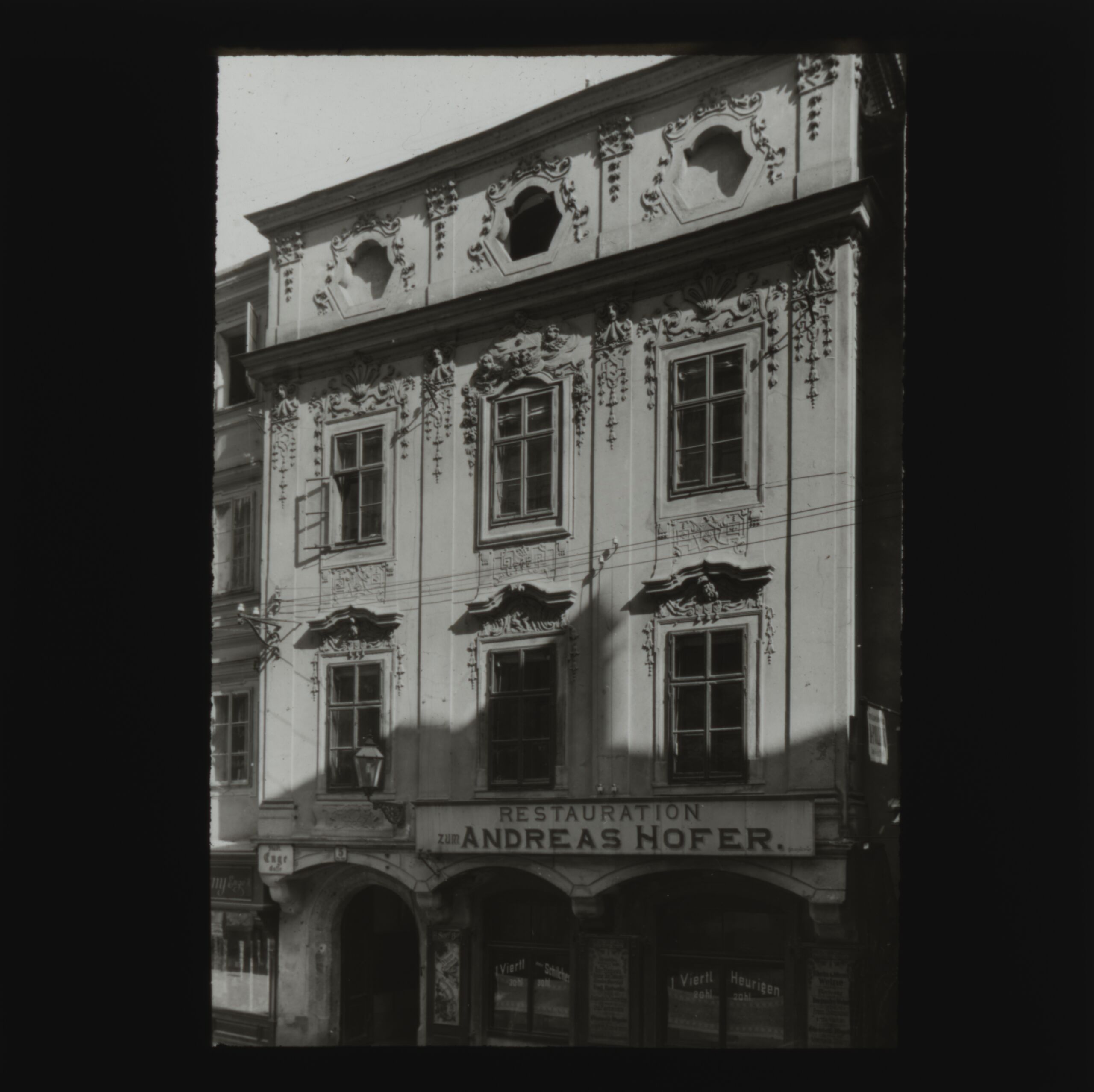 - Text am Objekt: RESTAURATION zum ANDREAS HOFER. Stadt Enge Gasse 5