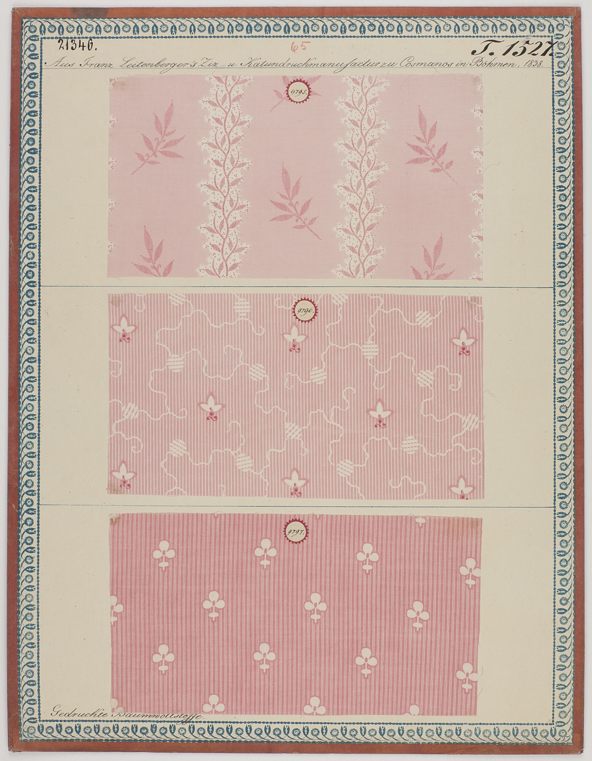 - label (front) : Aus Franz Leitenberger's Ziz- und Kattundruckmanufactur zu Cosmanos in Böhmen, 1838. / Gedruckte Baumwollstoffe.
