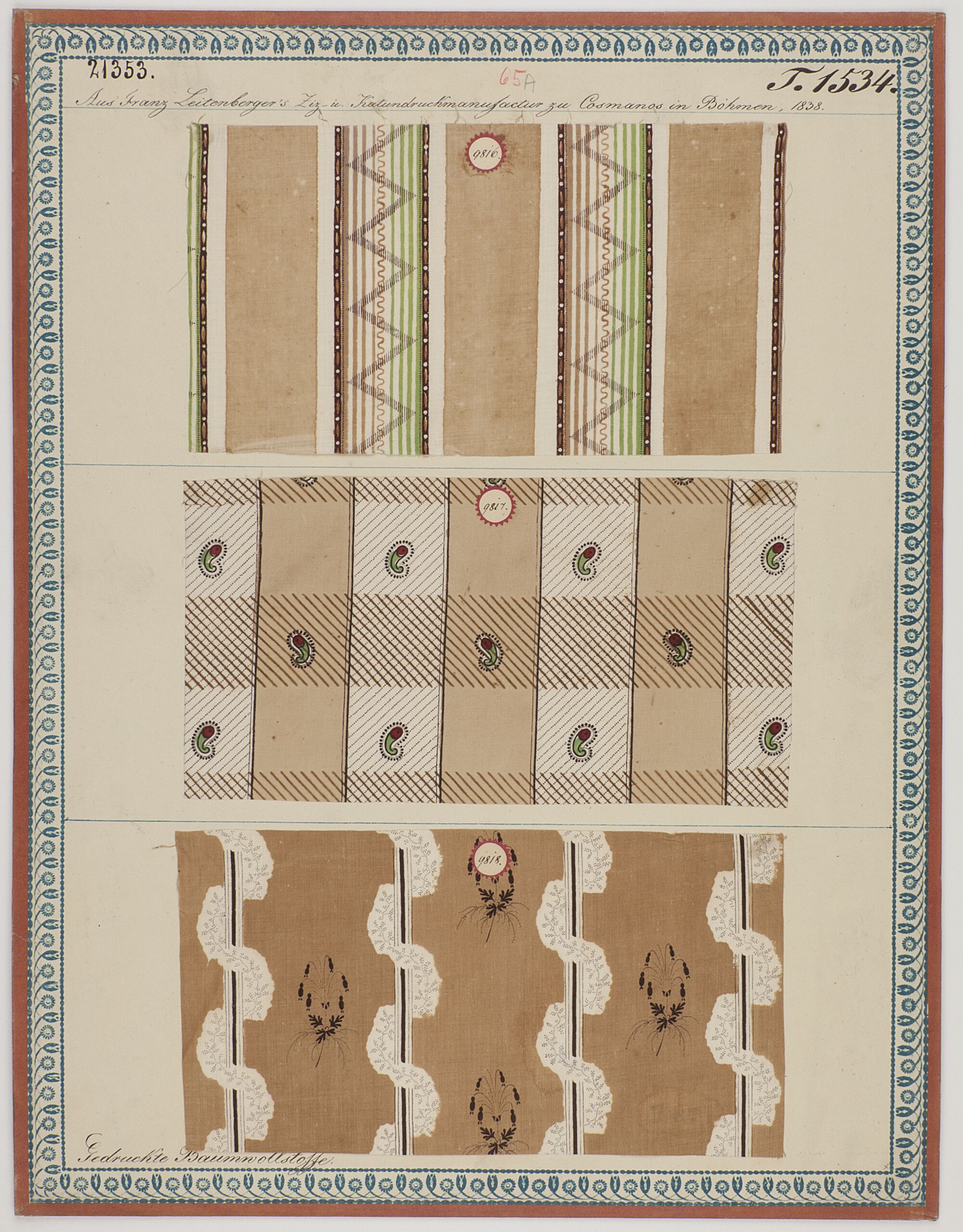 - label (front) : Aus Franz Leitenberger's Ziz- und Kattundruckmanufactur zu Cosmanos in Böhmen, 1838. / Gedruckte Baumwollstoffe.