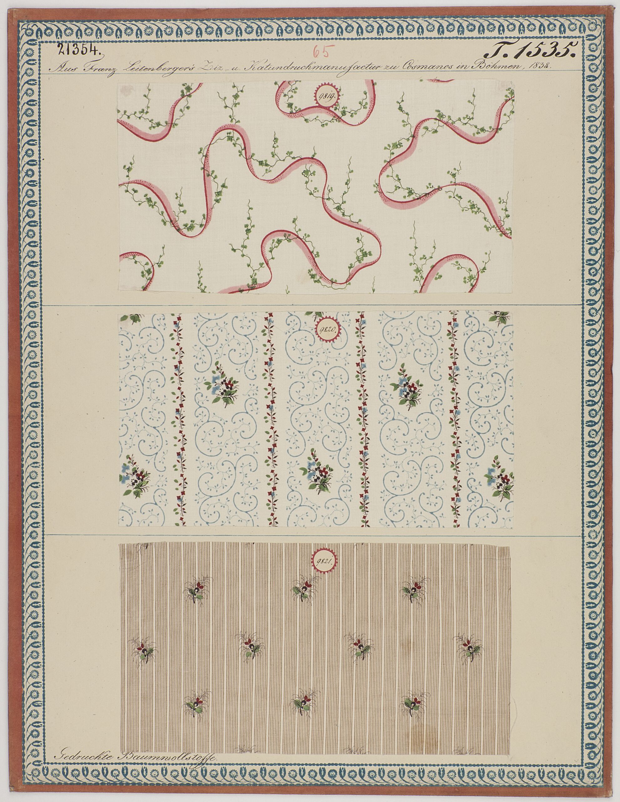 - label (front) : Aus Franz Leitenberger's Ziz- und Kattundruckmanufactur zu Cosmanos in Böhmen, 1838. / Gedruckte Baumwollstoffe.