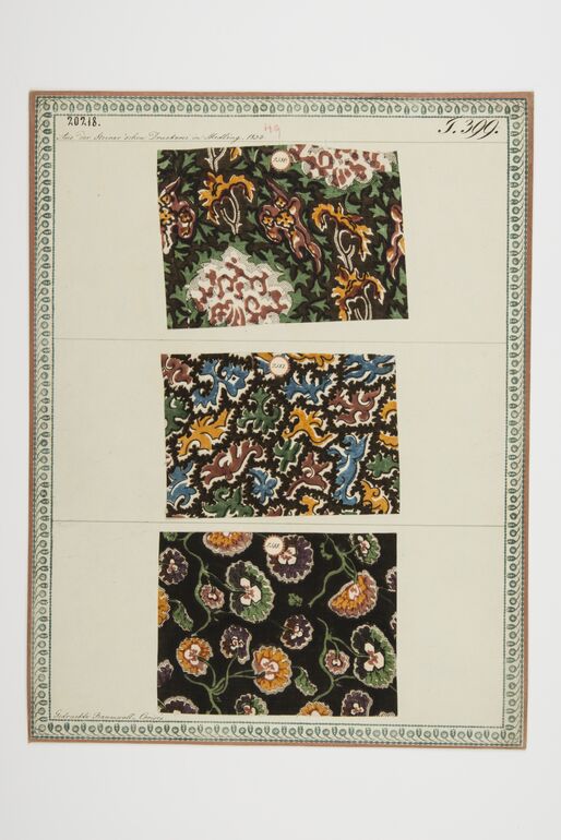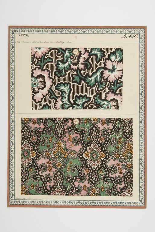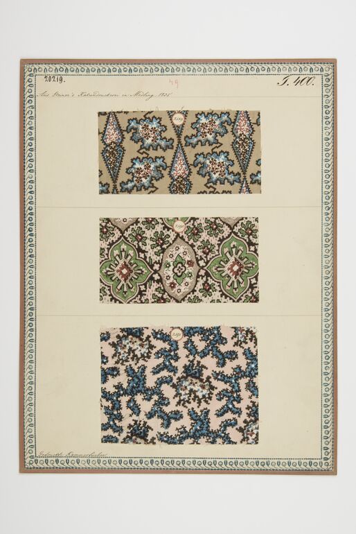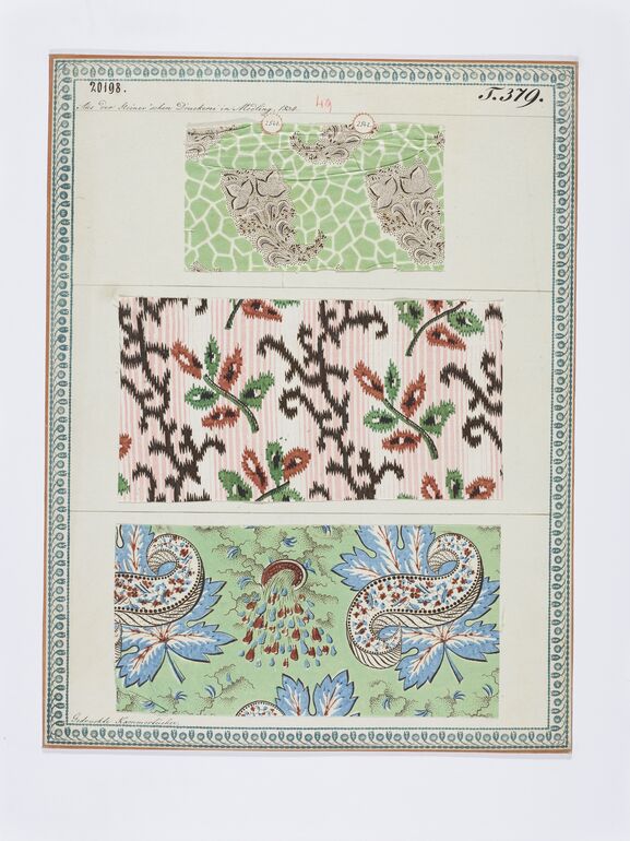 - label (front) : Aus Steiner's Kattundruckerei in Mödling, 1833. / Gedruckte Kammertücher. / Gedruckter Croisé