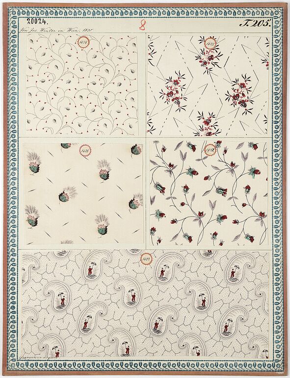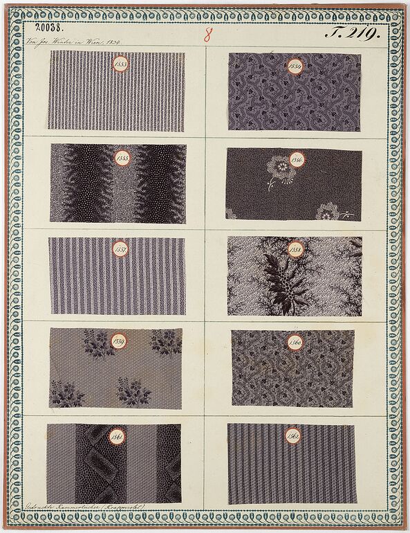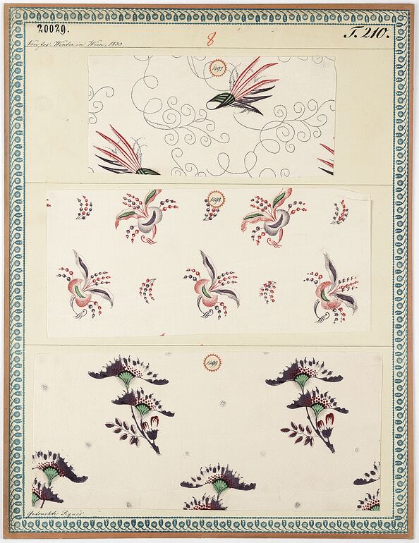 swatch board, Gedruckte Kammertücher, Joseph Winter, MAK Inv.nr. TGM 20037