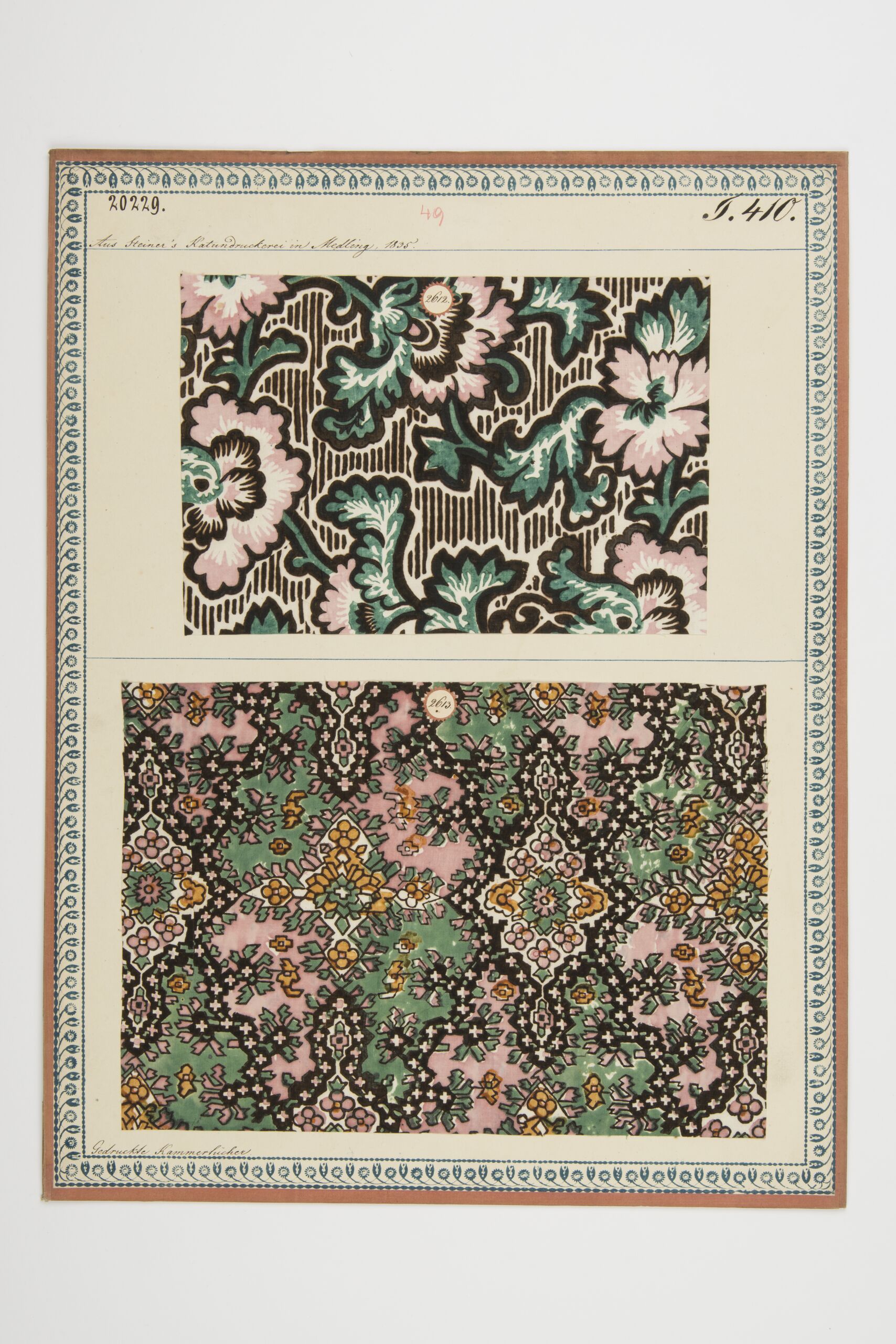 - label (front) : Aus Steiner's Kattundruckerei in Mödling, 1835. / Gedruckte Kammertücher.