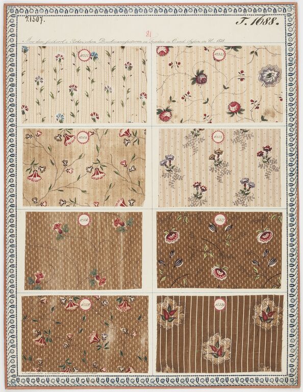 swatch board, Gedruckte Kammertücher, Zitz- und Kattunfabrik Fridau, MAK Inv.nr. TGM 21257