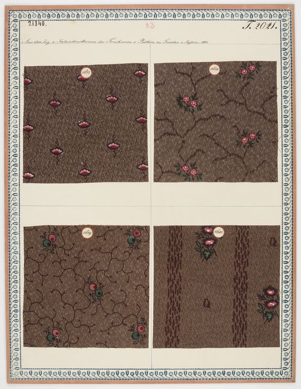 - label (front) : Aus den Ziz- u. Kattundruckereien des Freiherren v. Puthon zu Fridau u. Sassin, 1841. / Gedruckte Kammertücher.