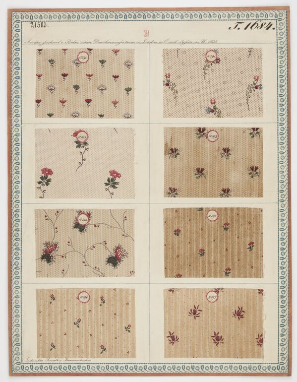 swatch board, Gedruckte Kammertücher, Karl von Puthon, MAK Inv.nr. TGM 21886