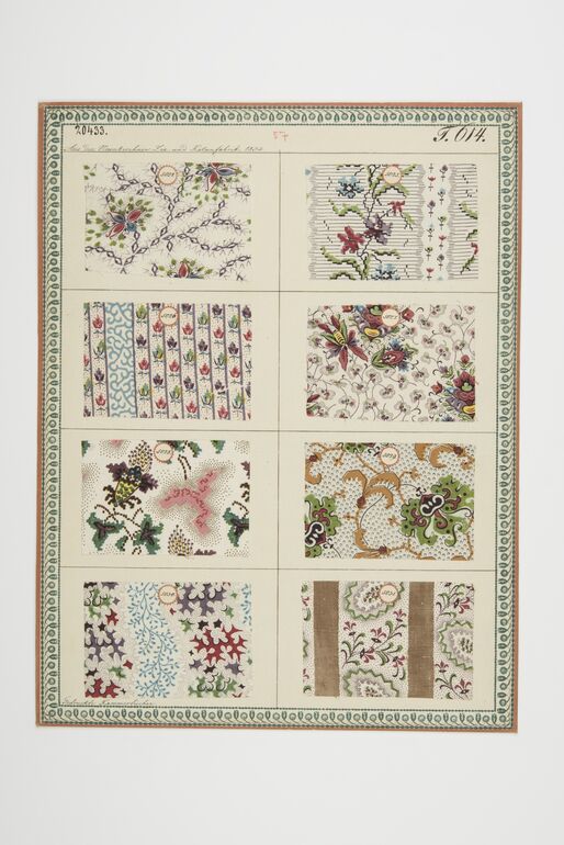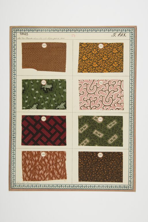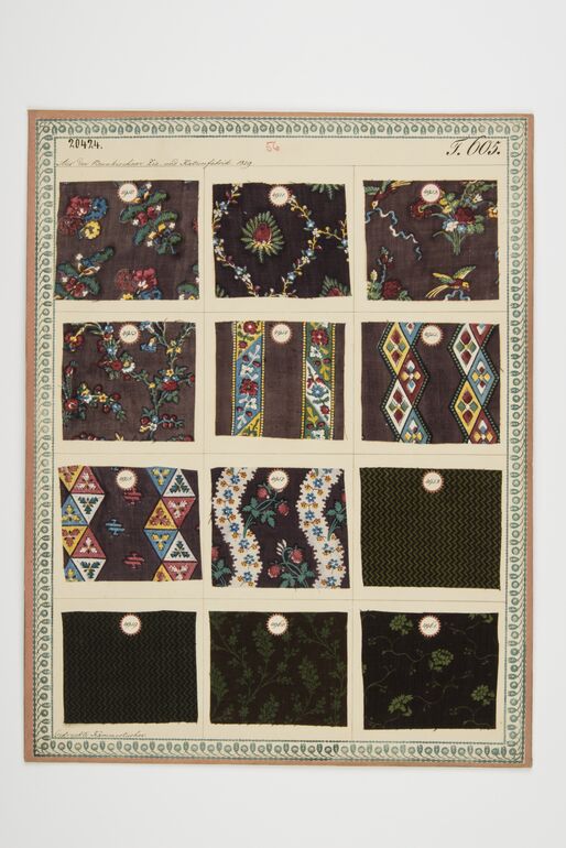 swatch board, Gedruckte Kammertücher, Du Pasquier et Comp. Du Bois, MAK Inv.nr. TGM 20312