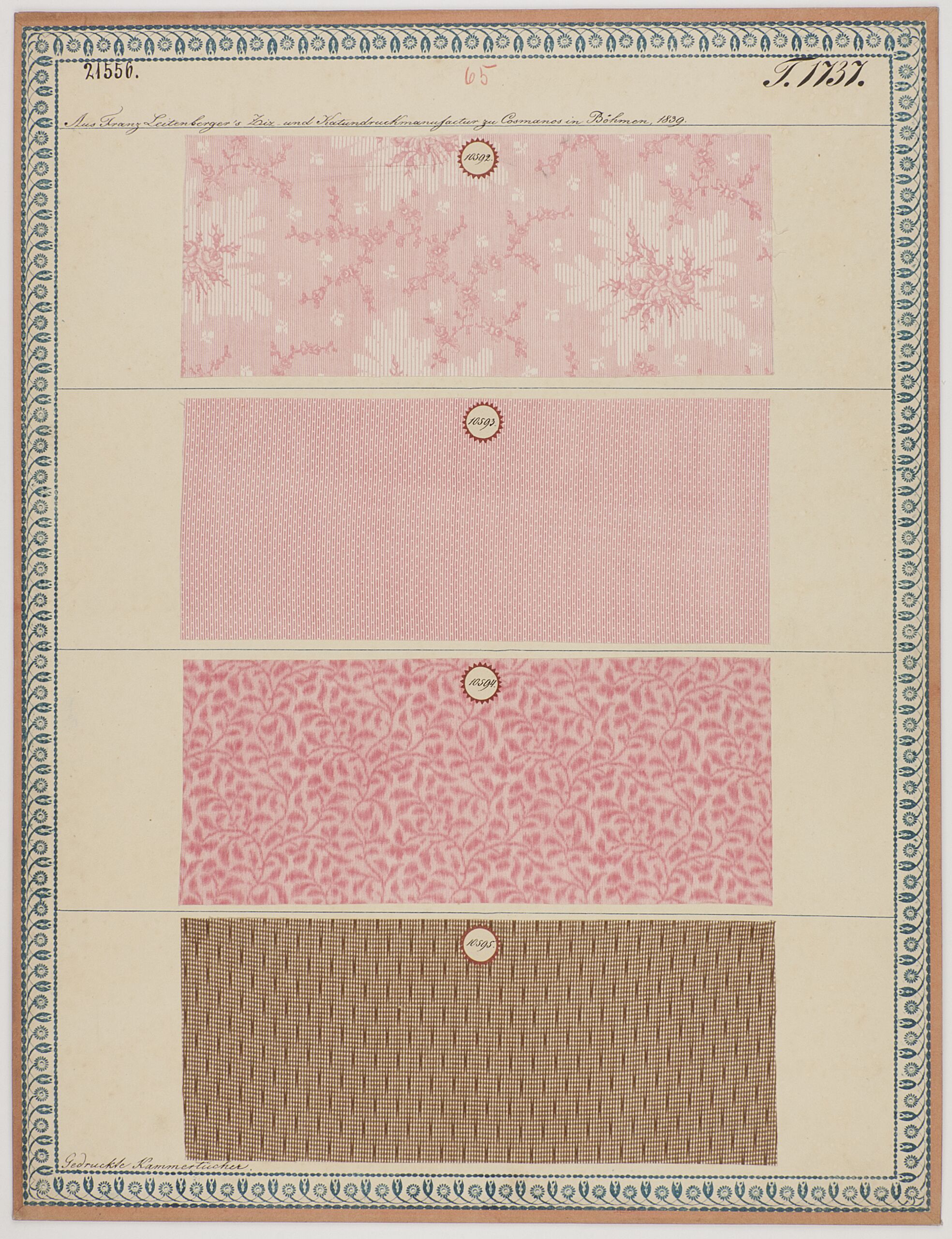 - label (front) : Aus Franz Leitenberger's Ziz- und Kattundruckmanufactur zu Cosmanos in Böhmen, 1839. / Gedruckte Kammertücher.
