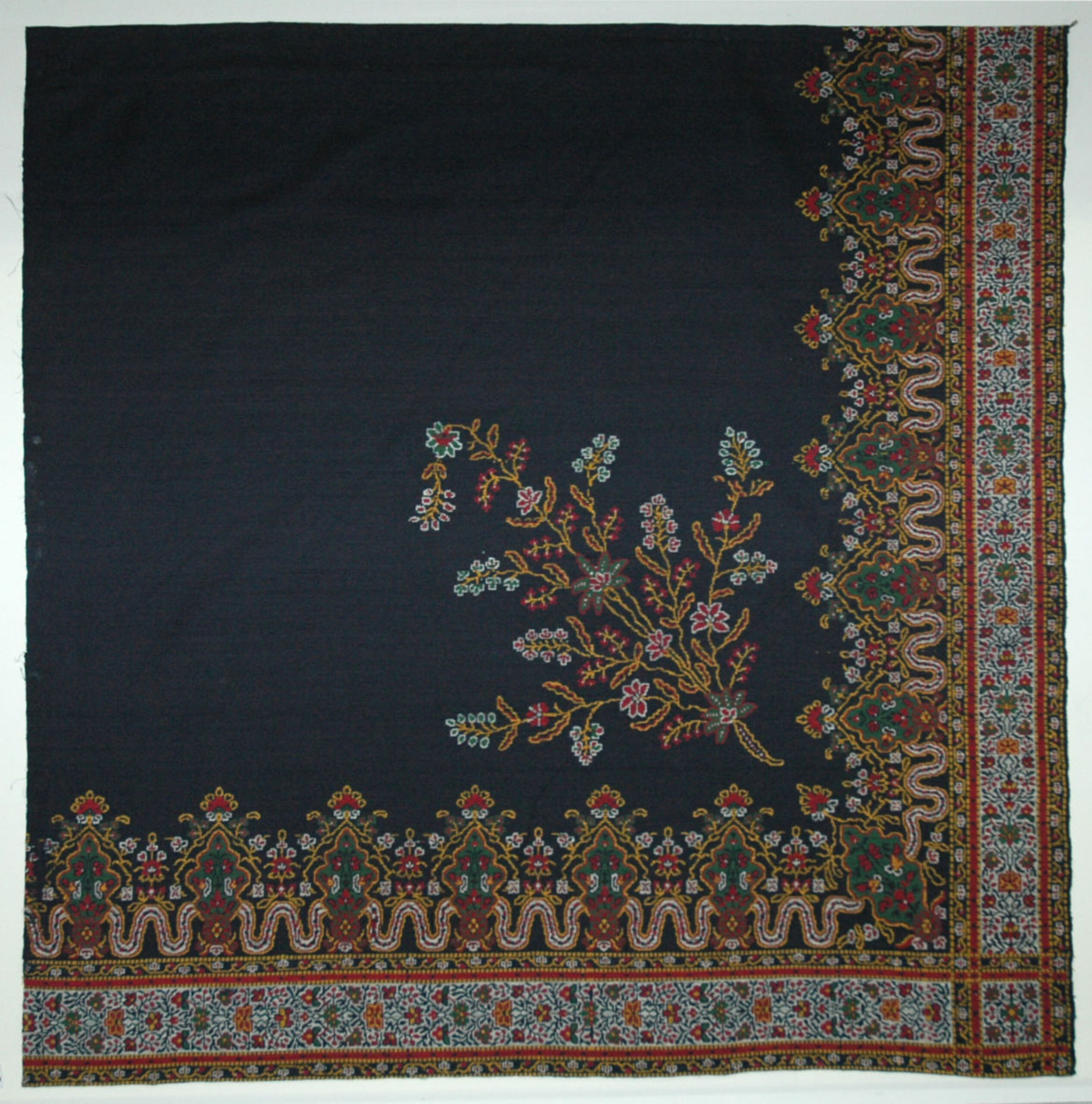 - Gemustertes Shawlviertel, schwarz-braungrundig (descriptive title)