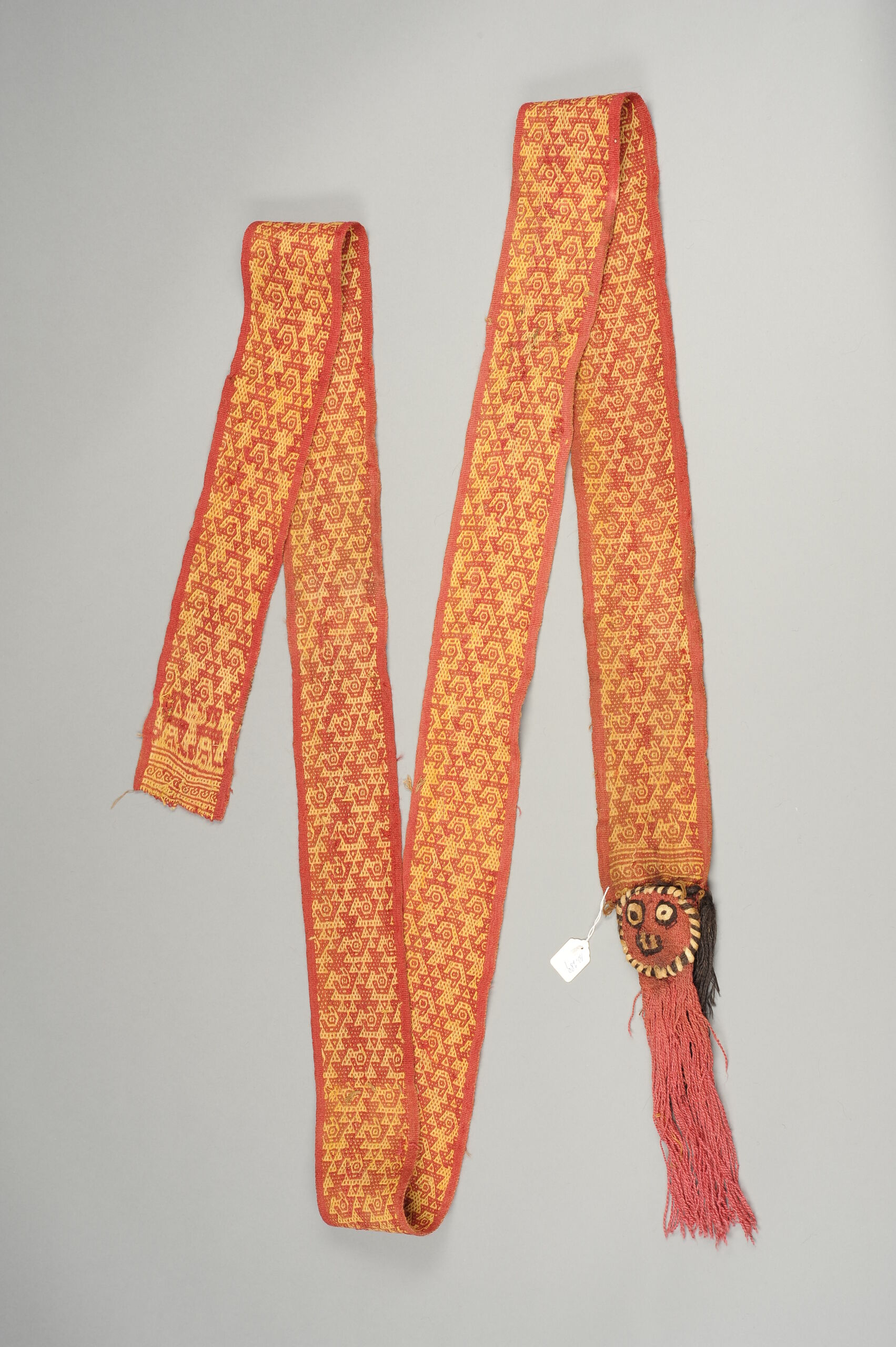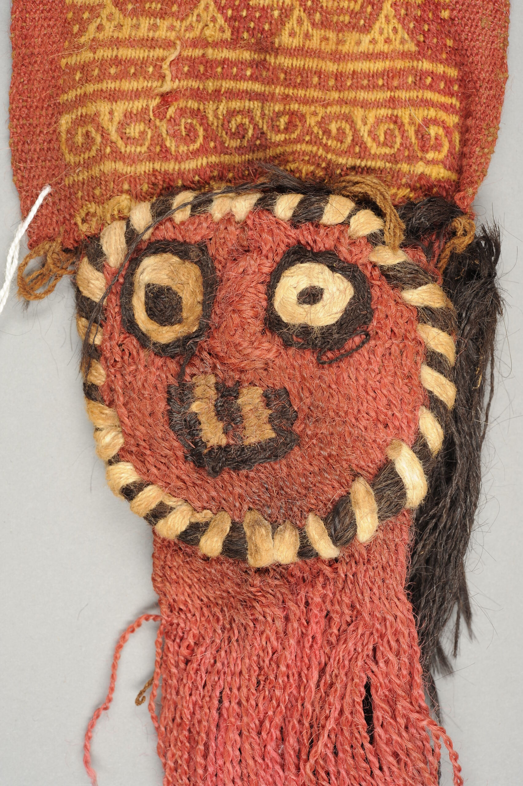 - Geometrisch gemustert; an einem Ende Maske mit Fransen (descriptive title)